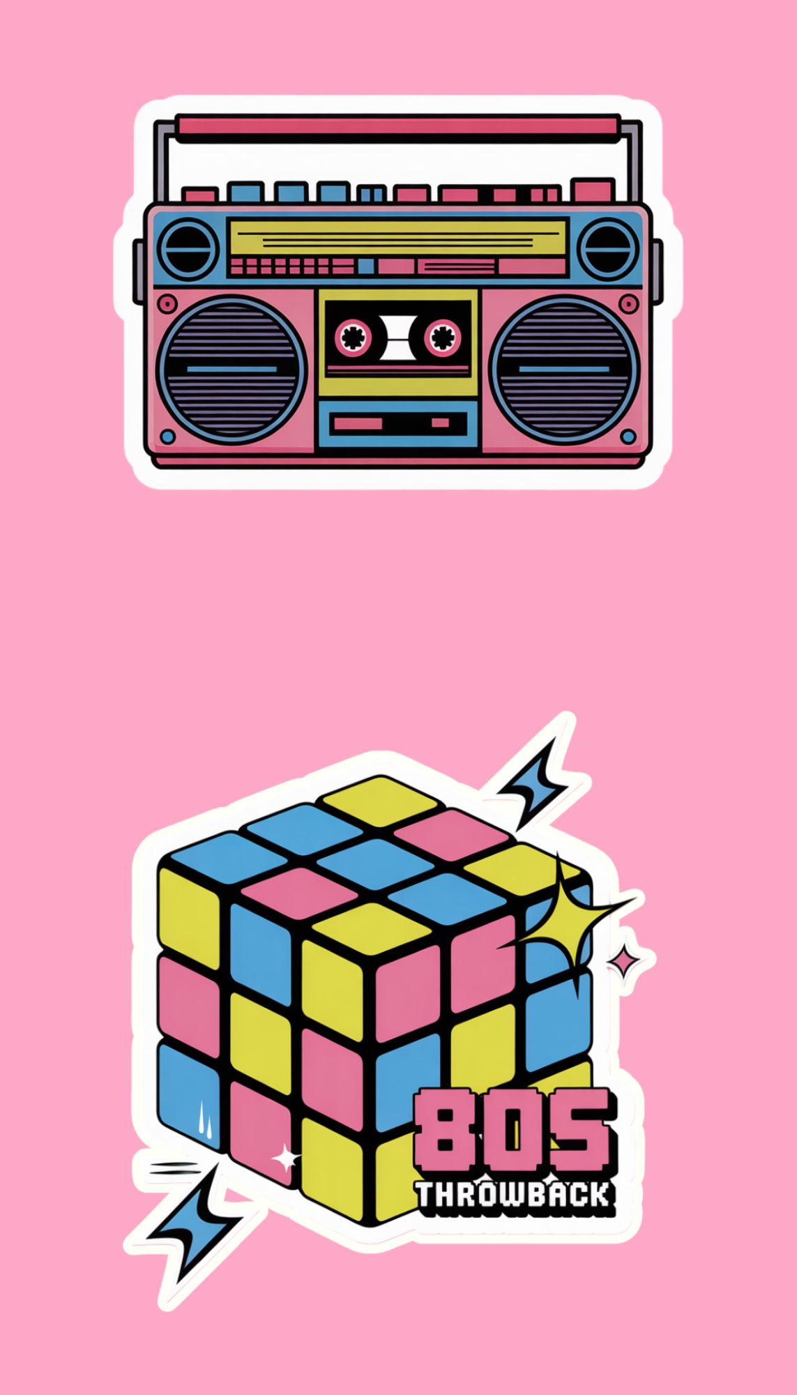 Introducing our 80s Aesthetic Stickers! Transform any surface into an ultimate throwback with our 6 vibrant stickers featuring toys, music, and cars with that iconic 1980s vibe. Bring the fun and nostalgia of the 80s wherever you go.