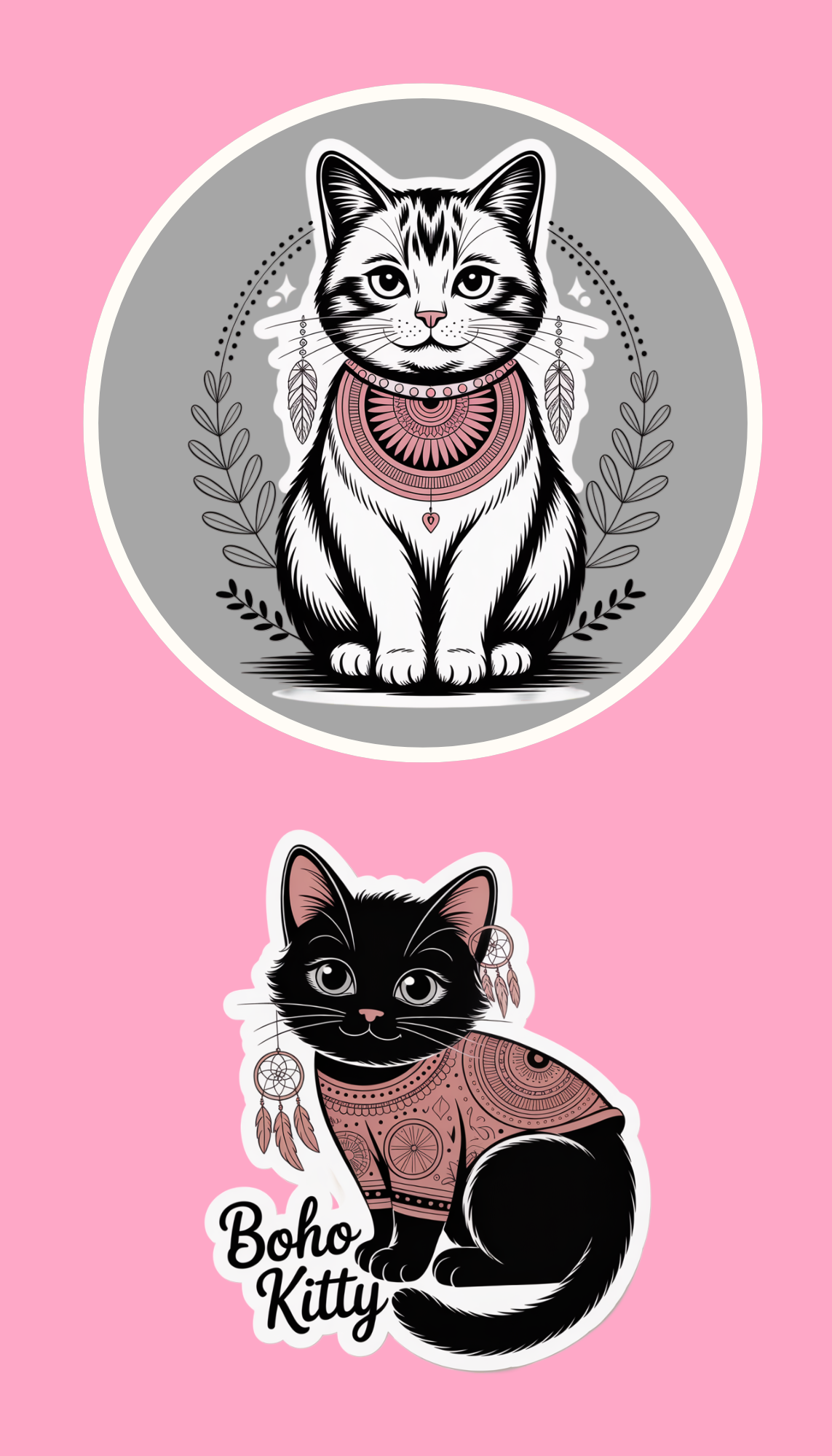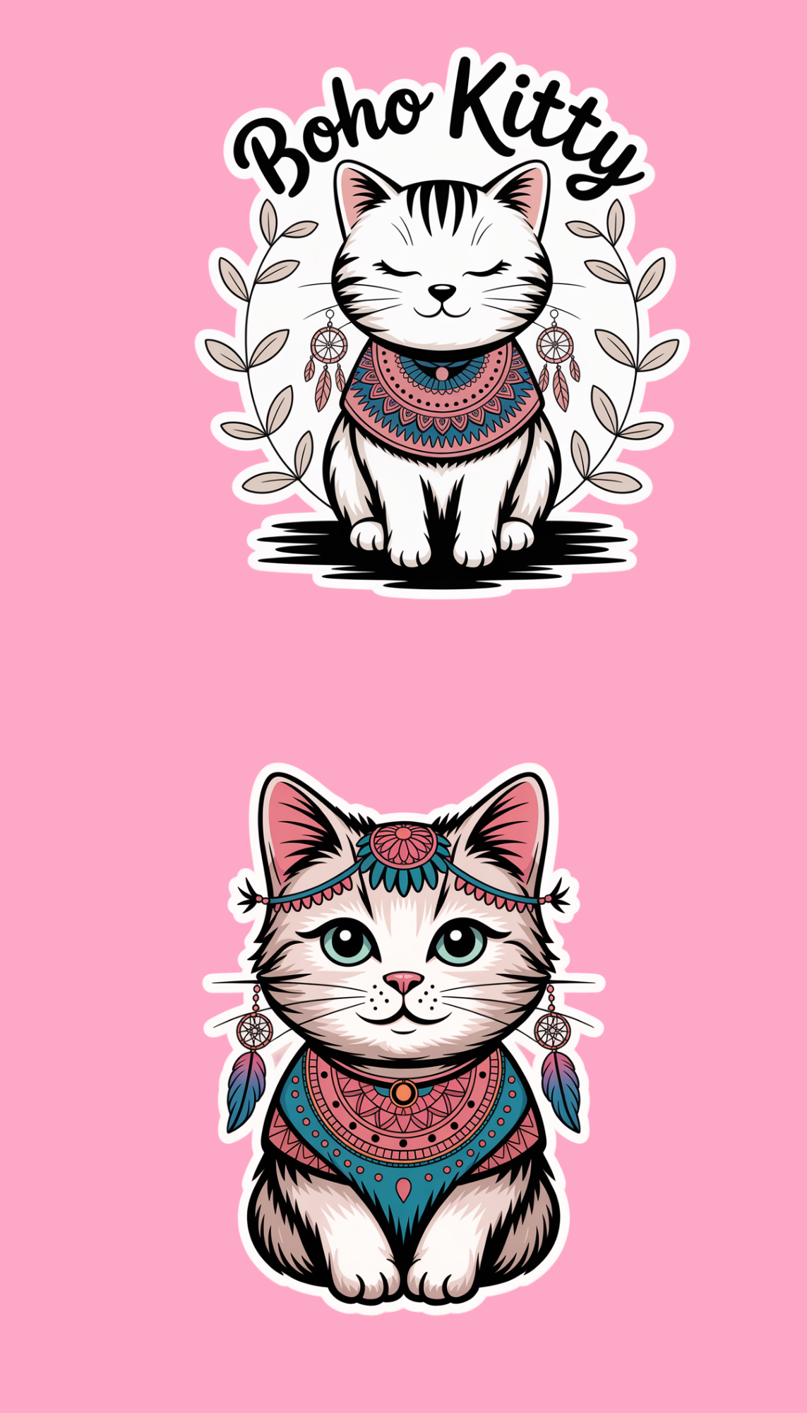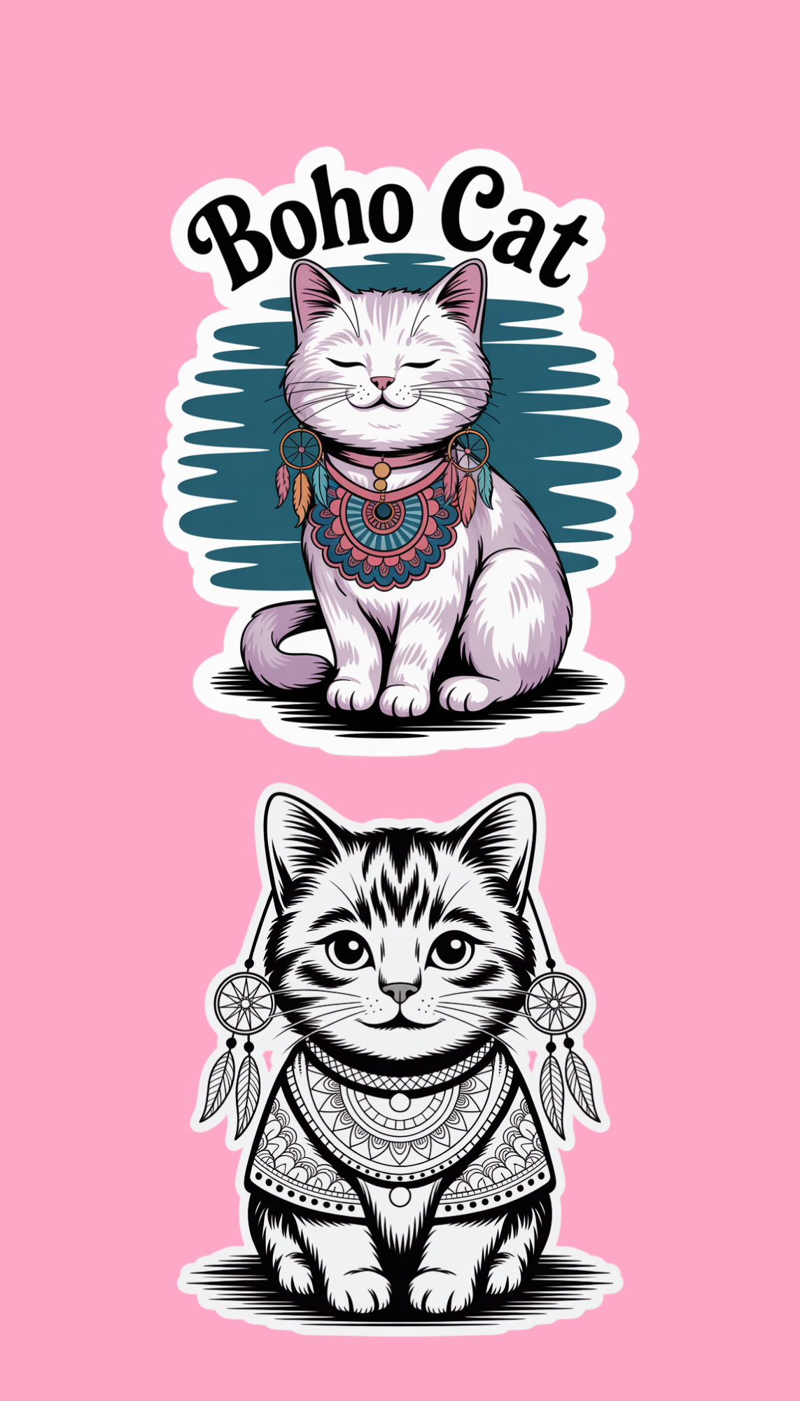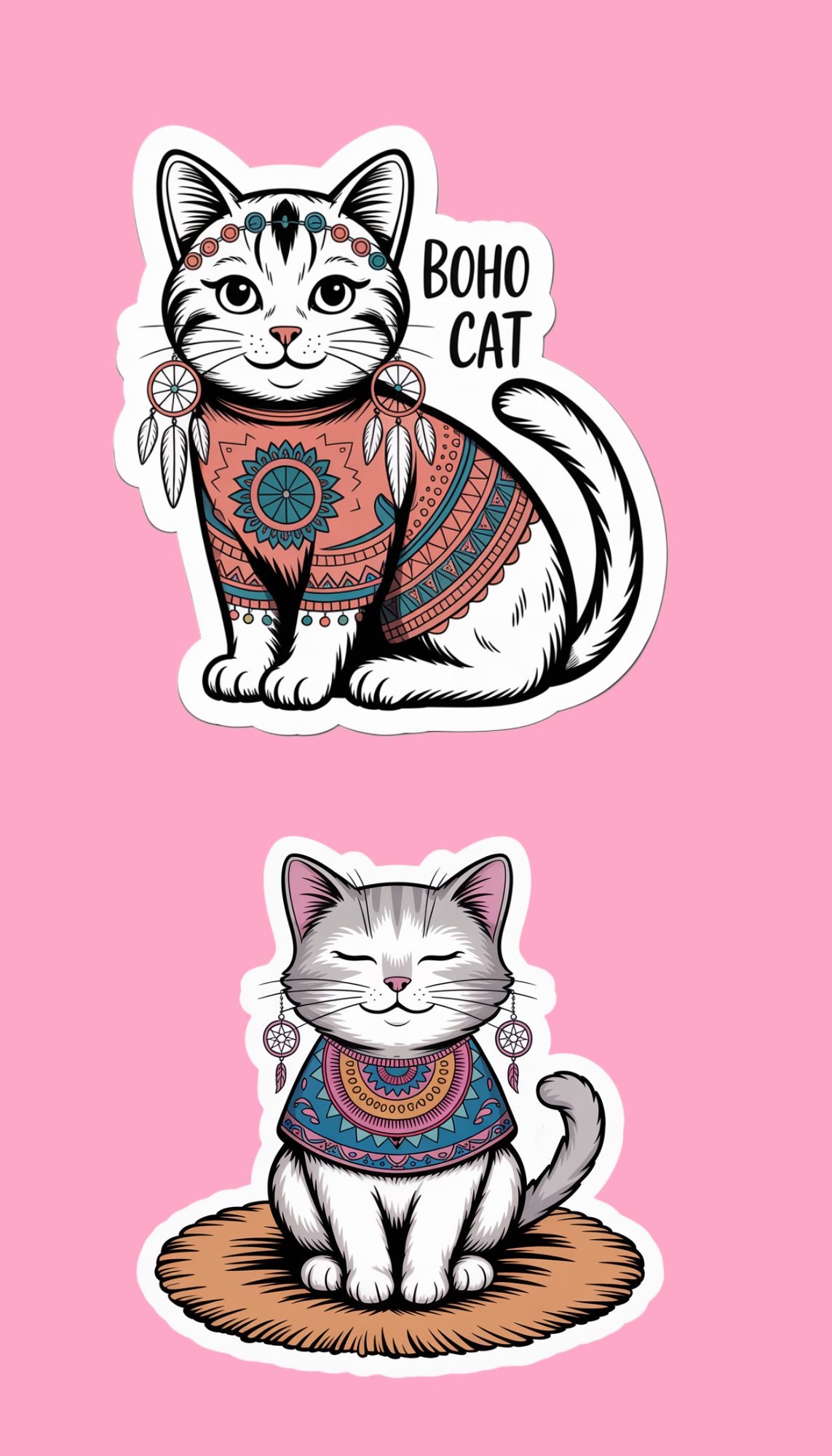 These boho cat sticker sheets feature 8 water-resistant stickers with intricate designs. Add a touch of whimsy to your belongings with these unique and temporary durable stickers.