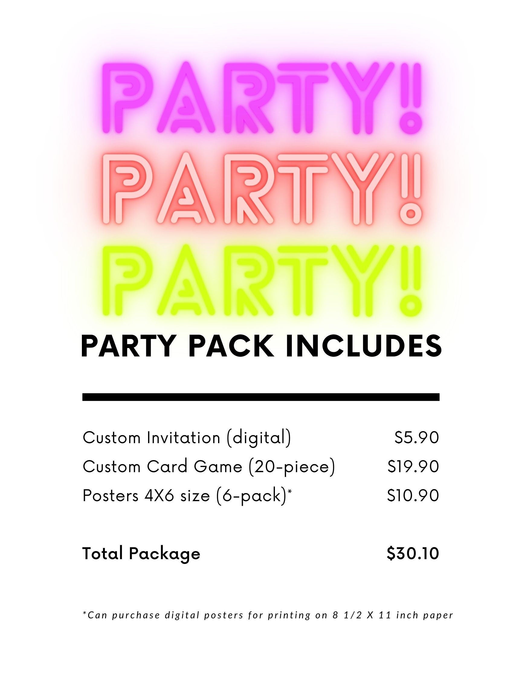 3. Decorations - Decorative Posters with your chosen theme. Each mini poster is 4 in x 6 in printed on colored Thermal Dye Sublimation Photo Paper which is stain, oxidation & water resistant. (6 pack each with image related to your theme). Hang on twine using clothespins to create a banner!