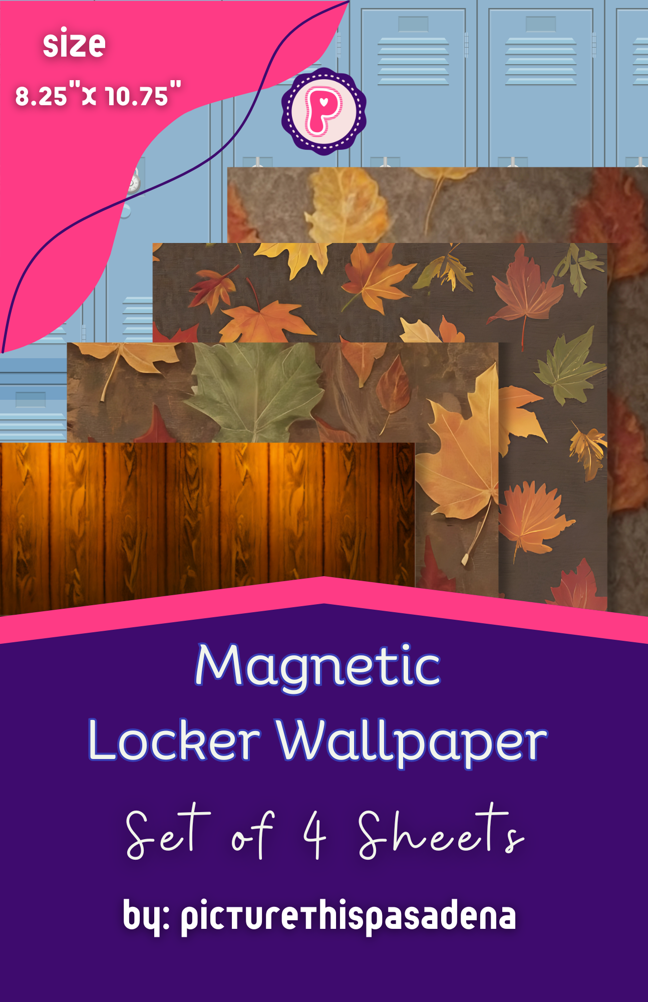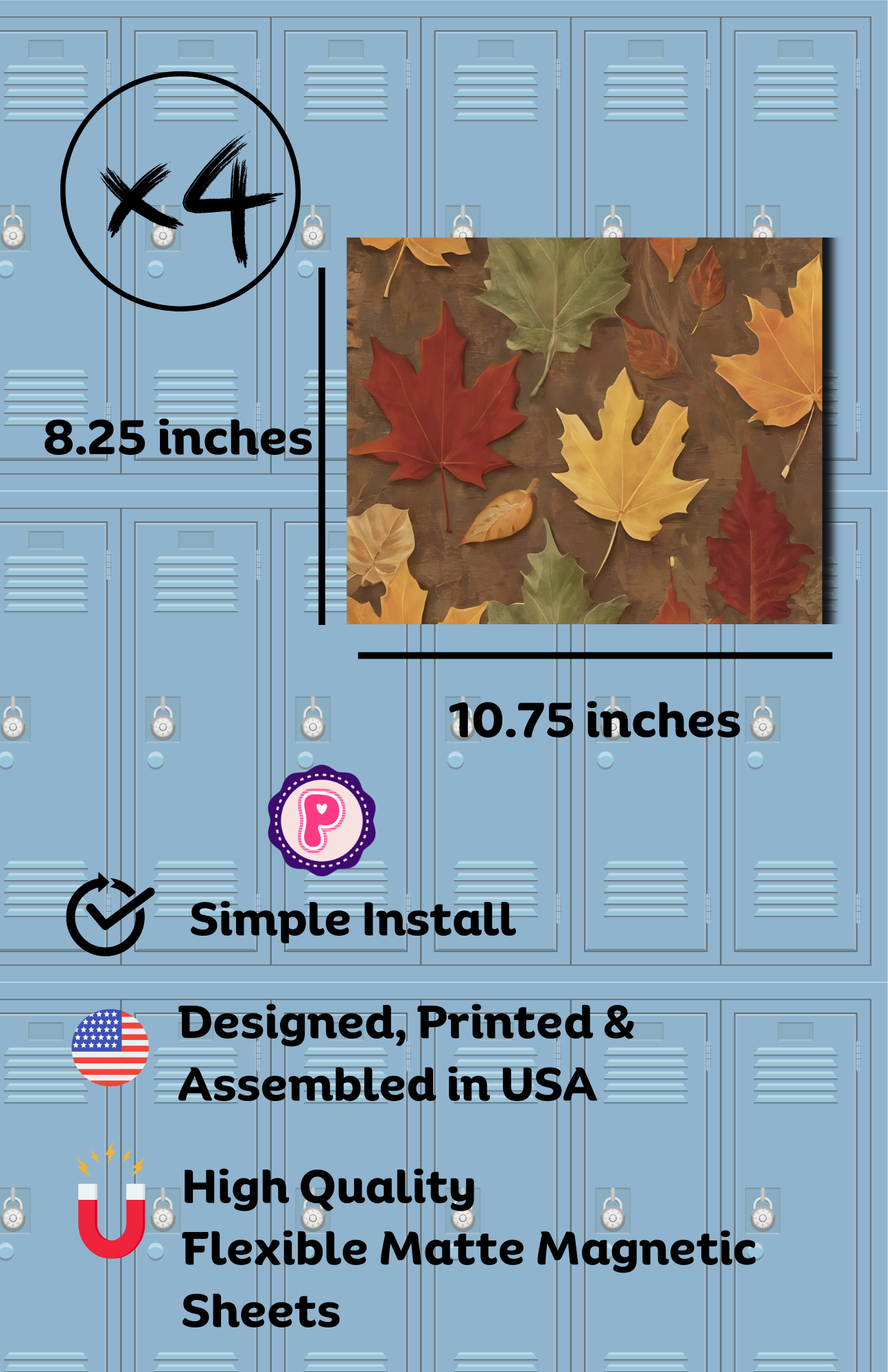 Transform your locker into a cozy autumn-inspired space with our Fall Inspired Magnetic Wallpapers. Choose from 4 patterns, including warm hues, wood grain, leaves and rich textures. Each magnetic sheet (8.25" by 10.75") pairs perfectly with our accessories. Bring nature indoors and add warmth to your locker with this must-have set.