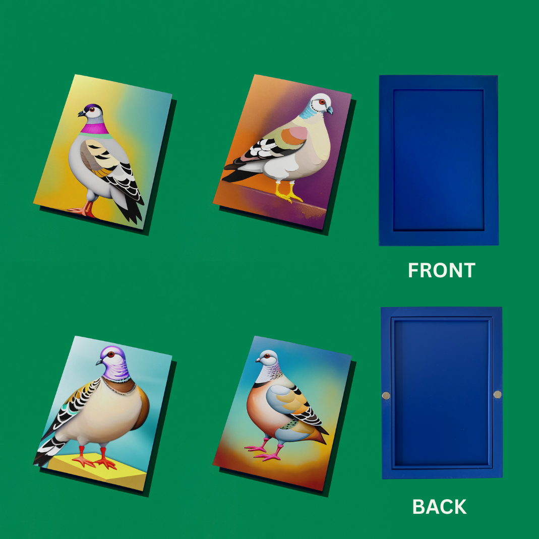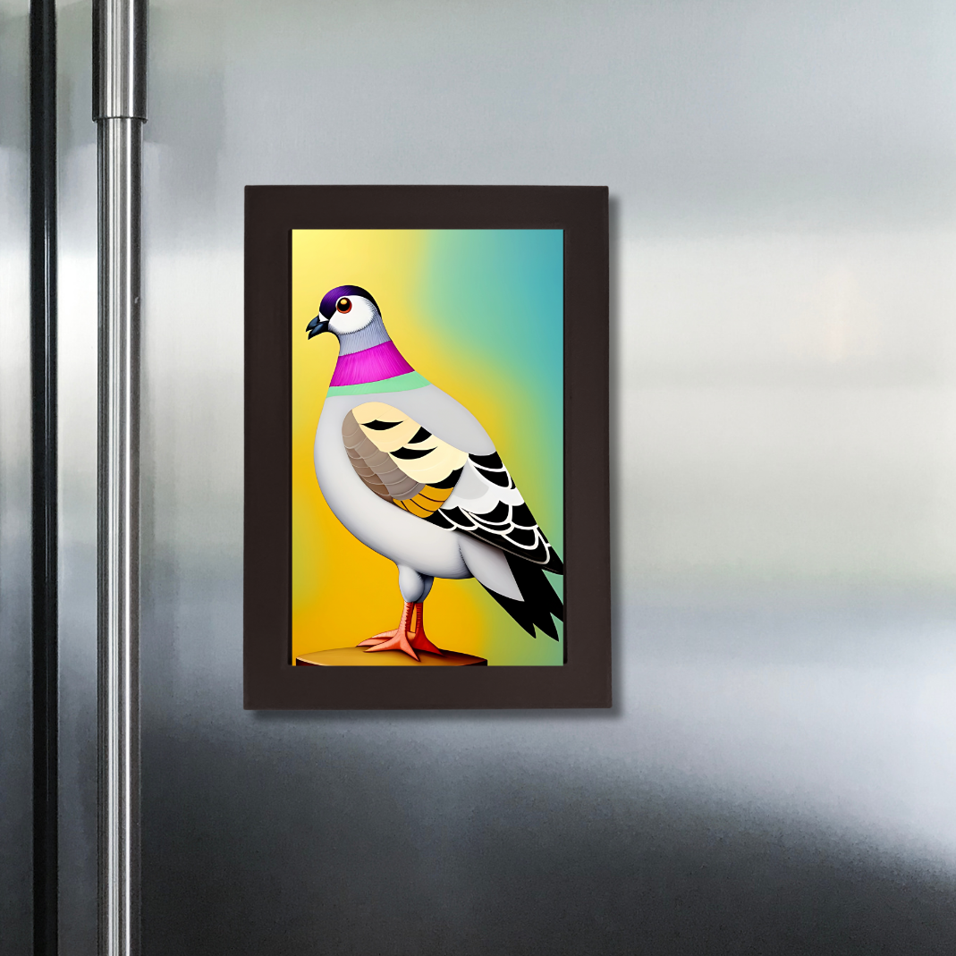 Enhance your home decor with one of these adorable Framed Pigeon Prints. Available in 4 unique designs, these miniature prints are perfect for bird lovers and art collectors alike. Made with high-quality thermal dye sublimation paper, these prints feature playful designs in vibrant colors that will add a touch of adventure to any room. Choose to purchase unframed or add our made-to-order magnetic frame for easy display options. Don't miss out on this one-of-a-kind piece of art!