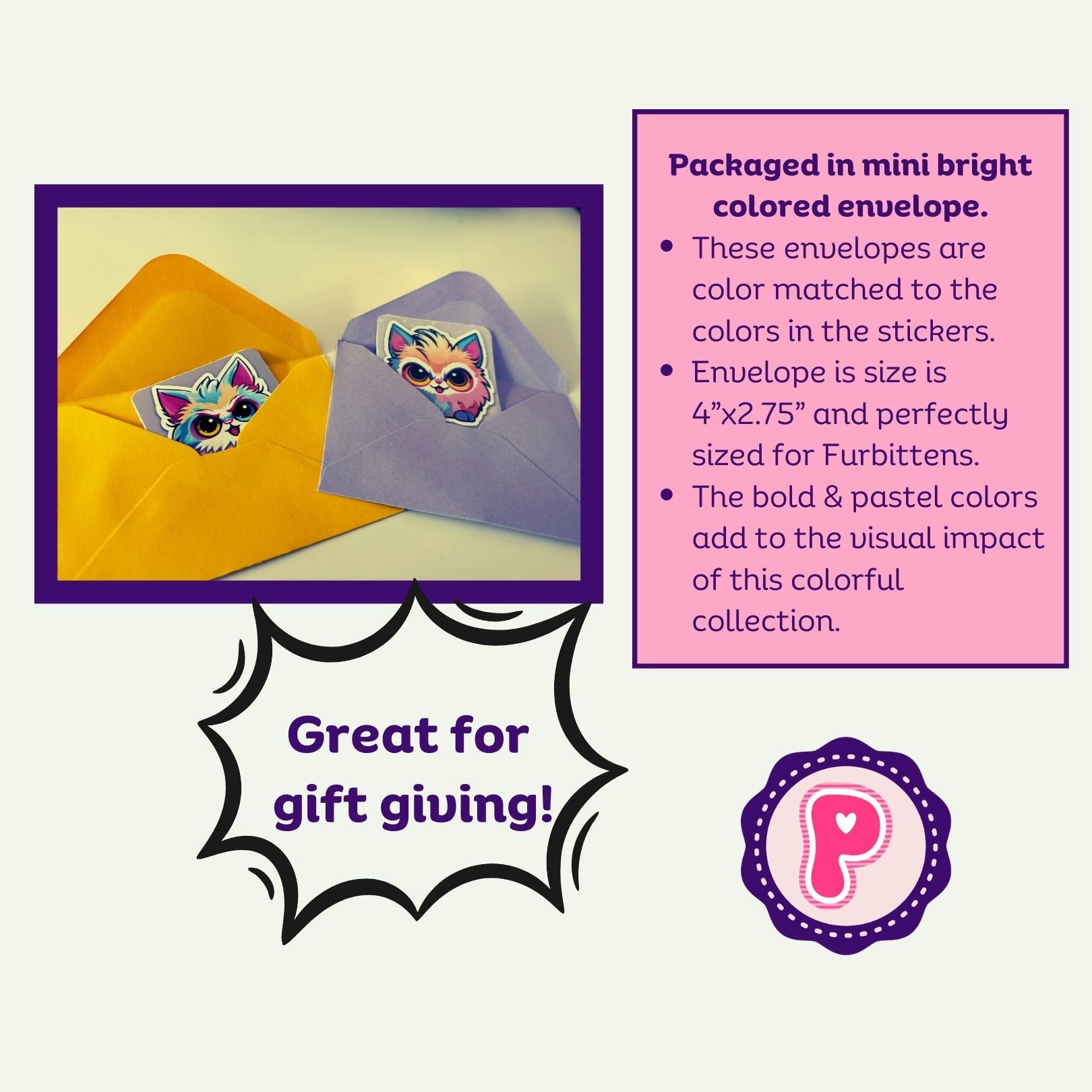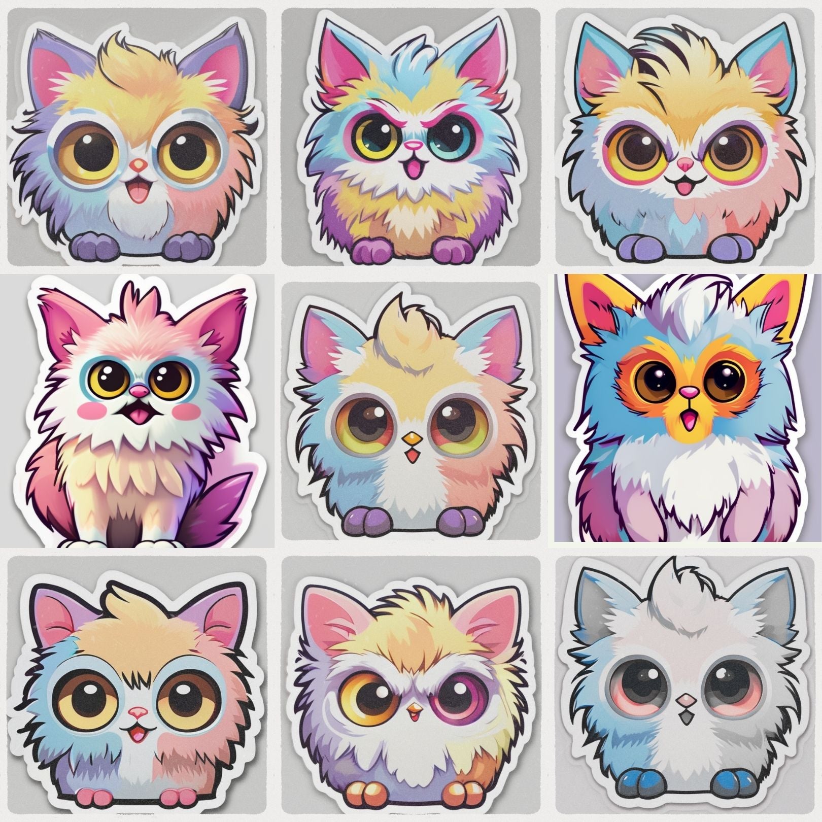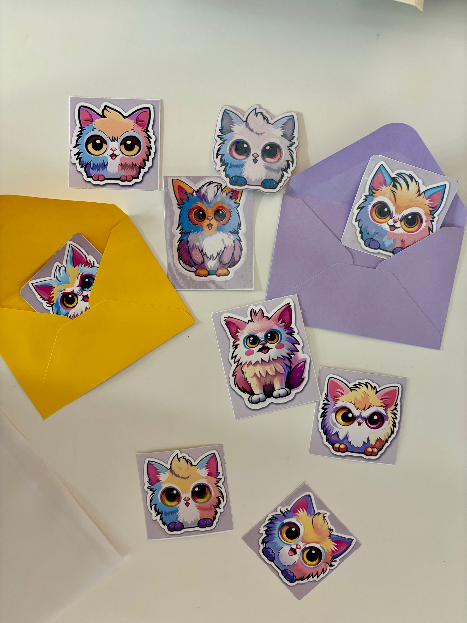 Transform your world with Furbittens Cartoonized Collectible Character Sticker Set! These 9 vinyl stickers feature adorable, cartoonized versions of our beloved Furbittens, in both matte and holographic finishes. Comes in a cute mini envelope for easy storage. Perfect for adding a touch of fun to any surface.