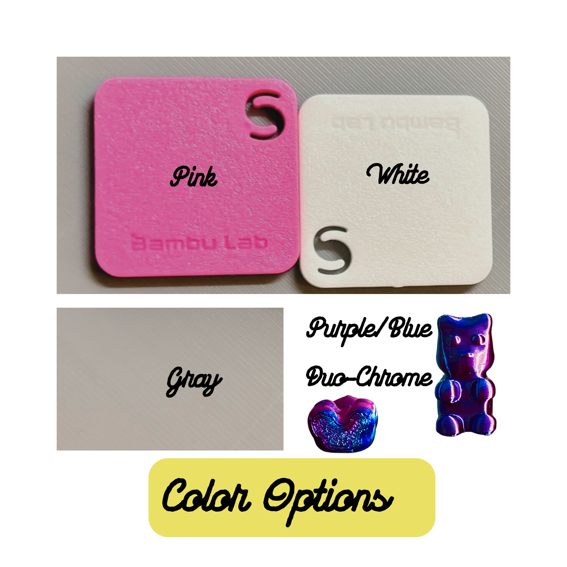 Magnets are made in the USA using high-quality PLA Filament. The Mini size has one rare earth magnet glued to the back, the Small size has 2 rare earth magnets on the back.