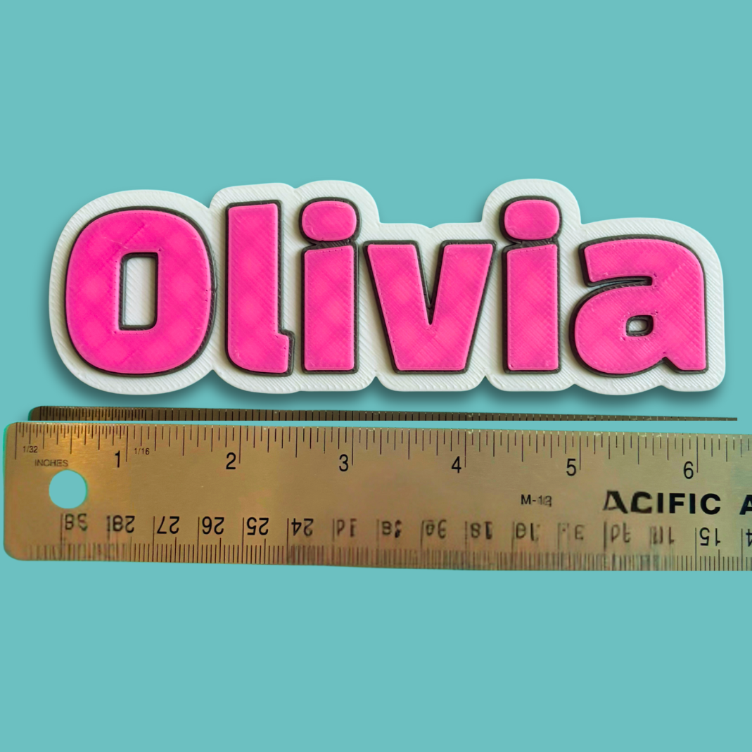 - Please note, if you choose clear (glow in the dark) as your base layer, you may be able to see the magnet through the base layer. However, we will try to place magnets behind the name to conceal them when possible.