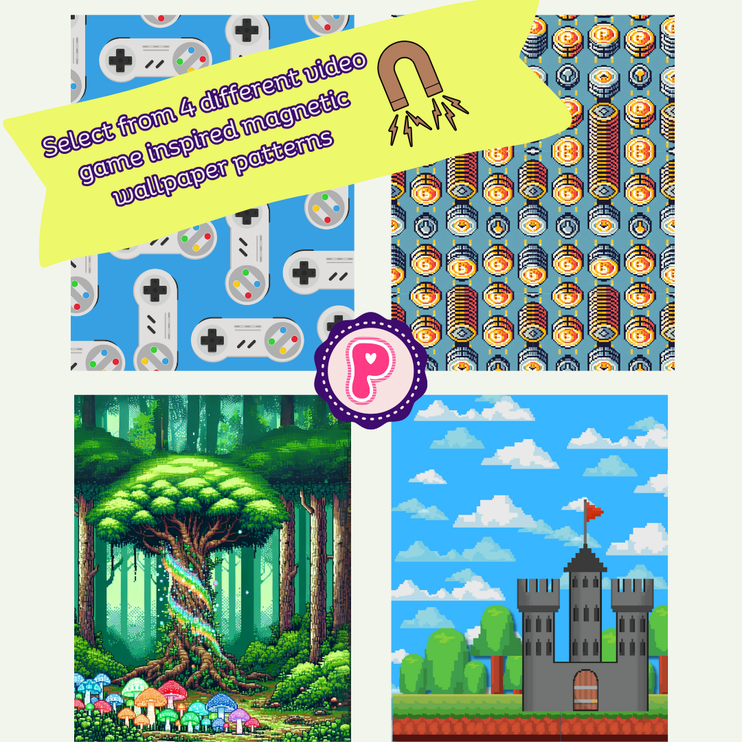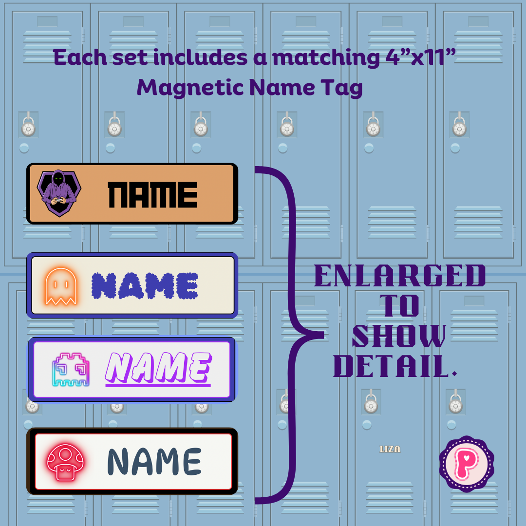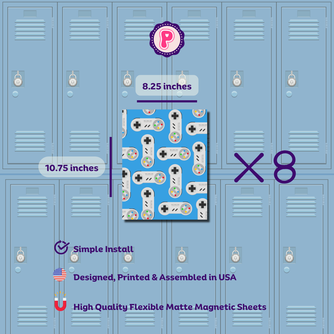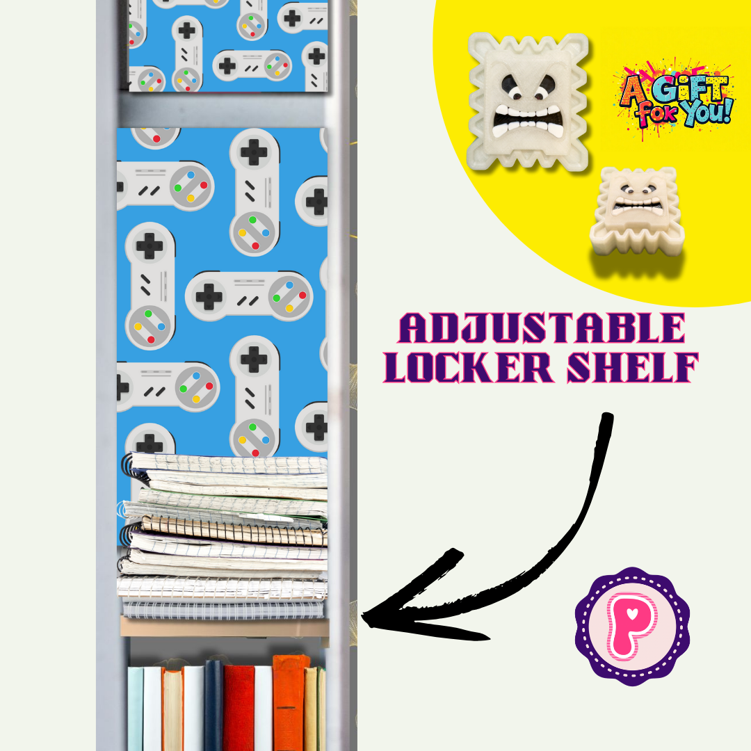 Experience the ultimate gaming vibes with Your Brand's Locker Wallpaper Kit - The Gamer. Featuring 8 sheets of magnetic wallpaper with 3 unique AI-generated designs, as well as 1 digitally illustrated design, an on-theme name tag, 8 matching labels, 6 magnets, an adjustable locker shelf, and a glow-in-the-dark Whomp Character. Perfect for school lockers or any metal storage units. Express your gaming skills with style.