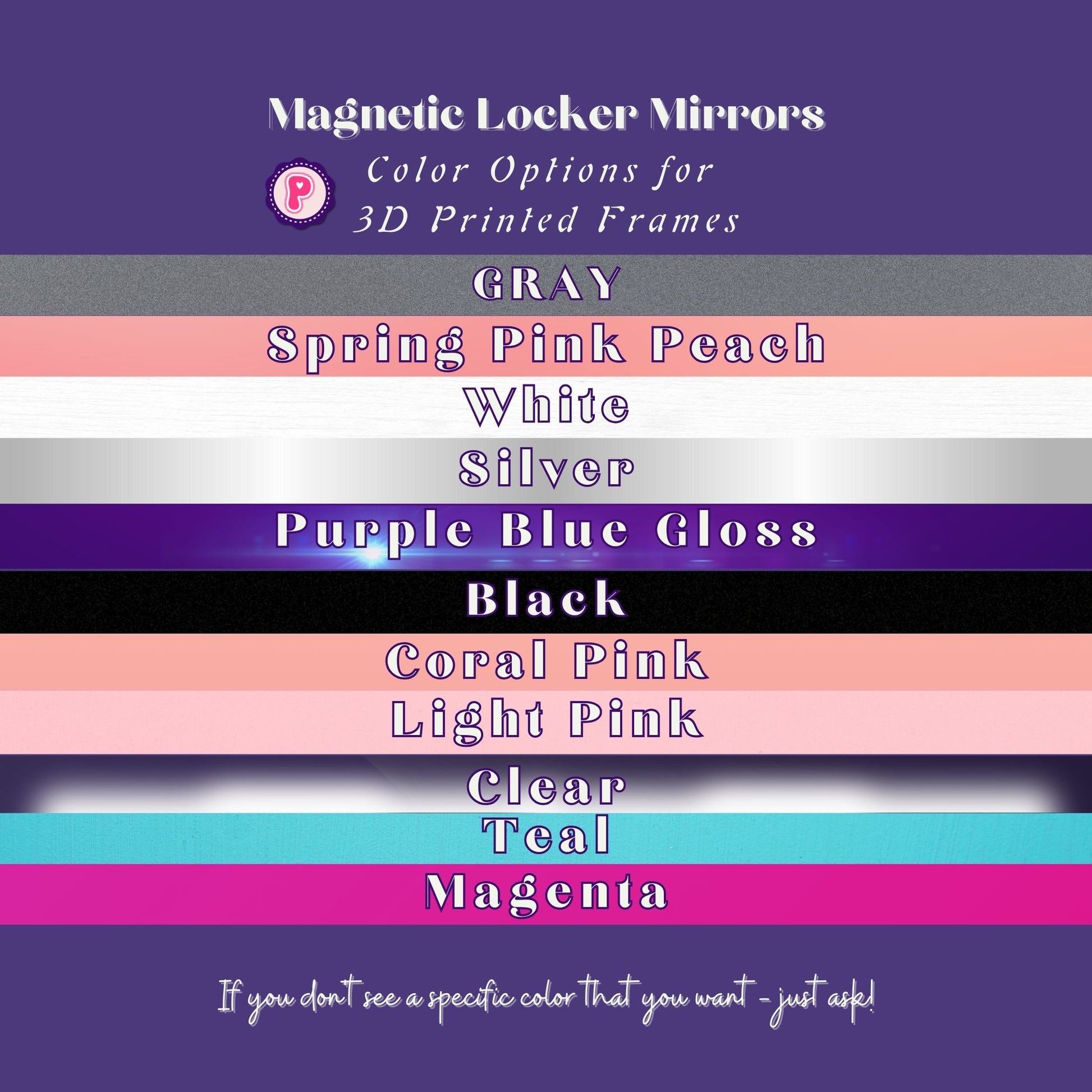 Our frames, made from eco-friendly PLA Filament, are fully customizable with various designs and colors. See yourself clearly with our sturdy, personalized locker mirrors.