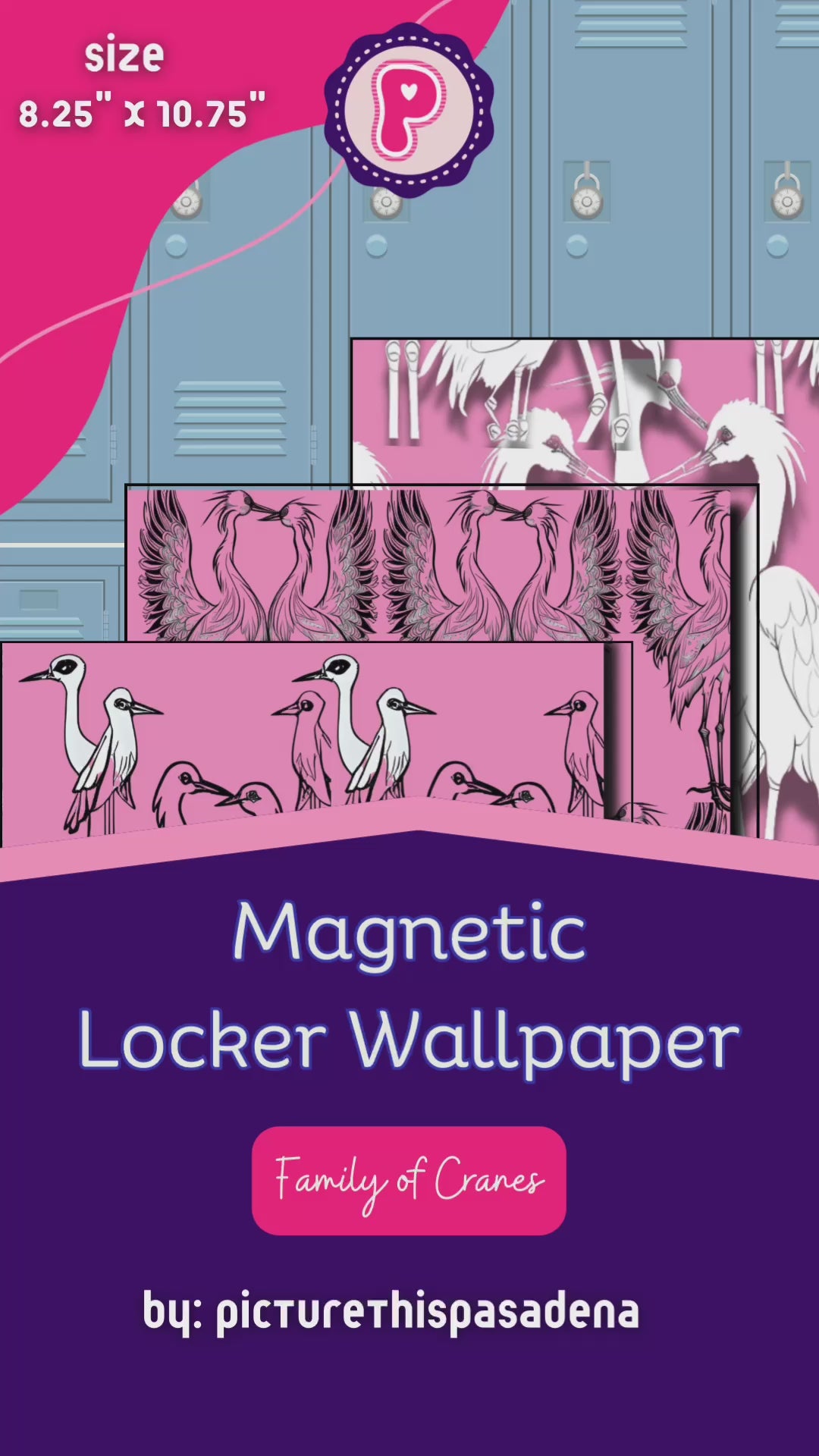 Transform your locker into a serene space with our Magnetic Locker Wallpaper - Family of Cranes Collection, featuring 4 unique crane prints. Crafted in the USA, each 10.75x8.25 inch sheet is available in matte or glossy finish. 4 sheets per package. Elevate your locker game with this calming and functional addition.