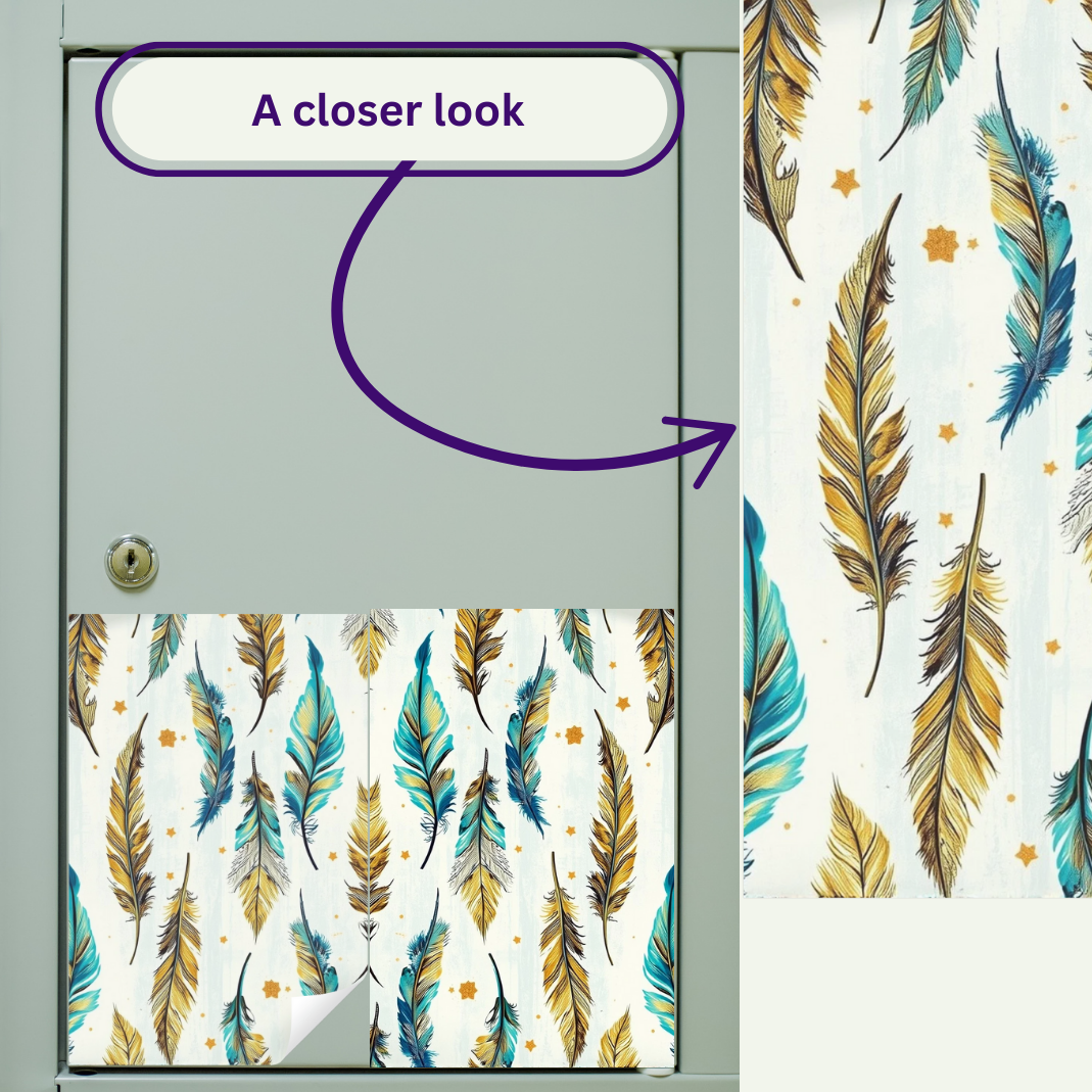 Our Magnetic Locker Wallpaper now offers two stylish feather patterns, perfect for adding a unique touch to your space. Each package includes three magnet-backed sheets, each roughly the size of a standard letter sheet of paper, allowing easy customization and repositioning without damage. Ideal for personalizing lockers, desks, or metal surfaces with a trendy, effortless design.
