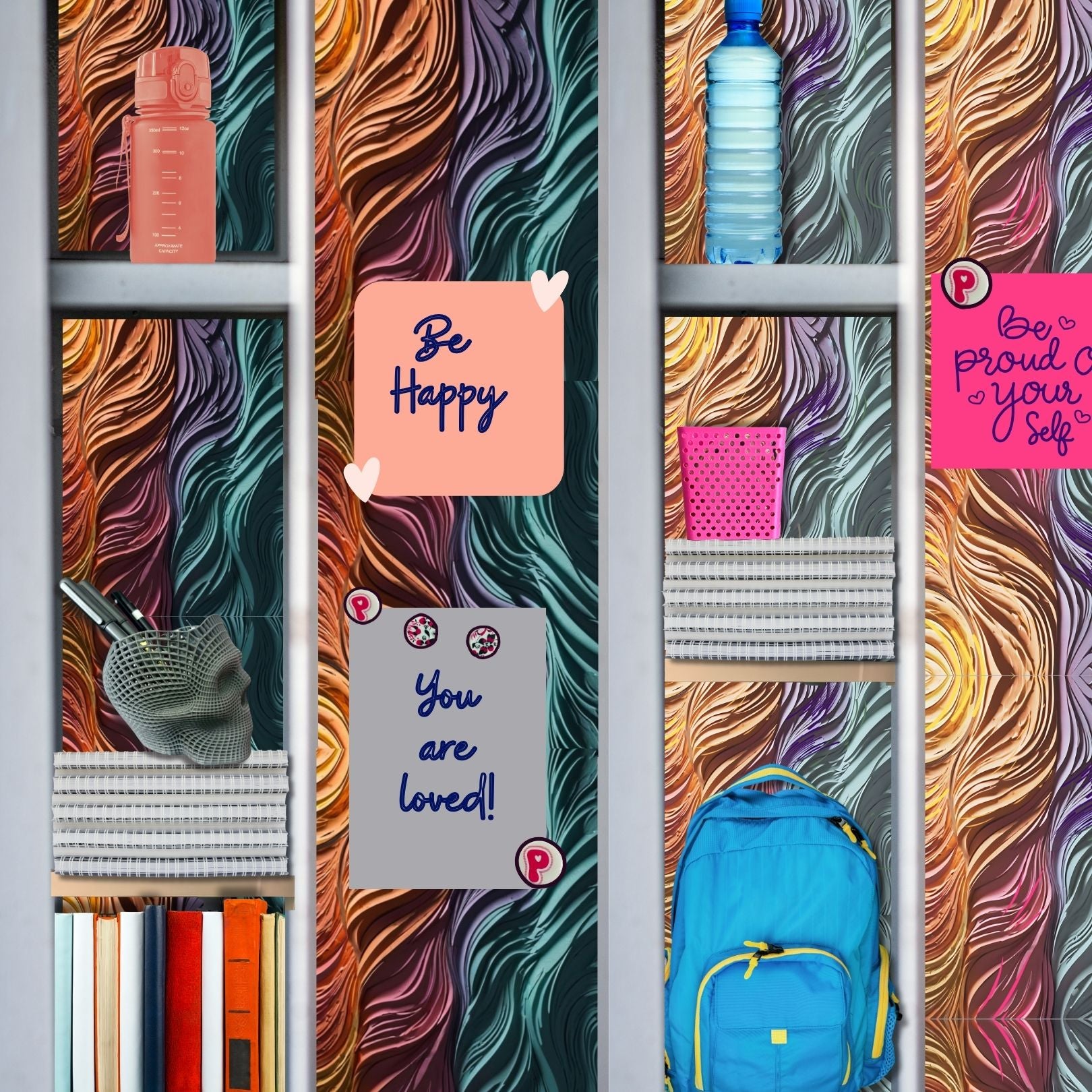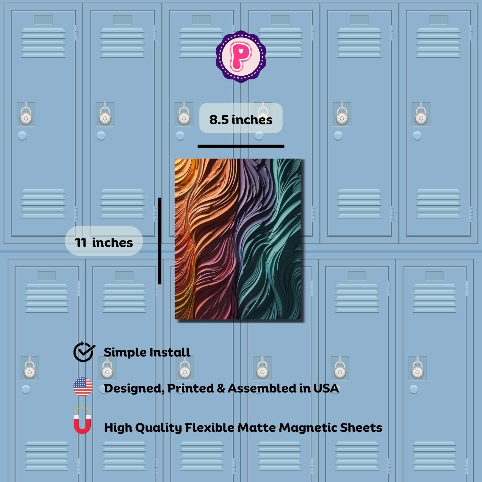 Transform your locker into a dynamic space with our Magnetic Locker Wallpaper from the Feel The Movement Collection. Using relief surfaces as inspiration, light, shadows, and vibrant colors create the illusion of movement. Each pack includes 4 top quality, matte finish magnetic sheets, perfect for matching with your backpack. Pair with any of our locker accessories to complete the look!