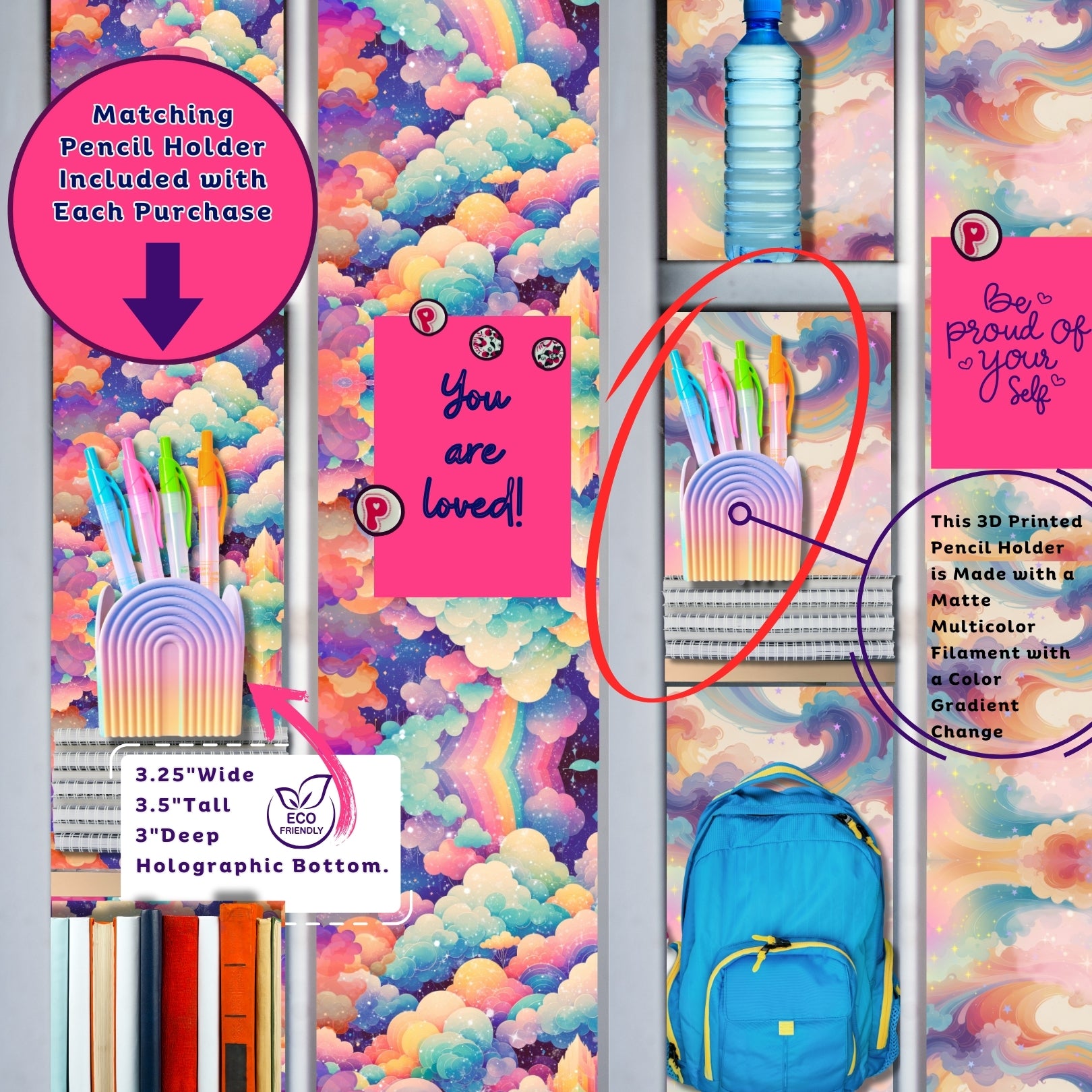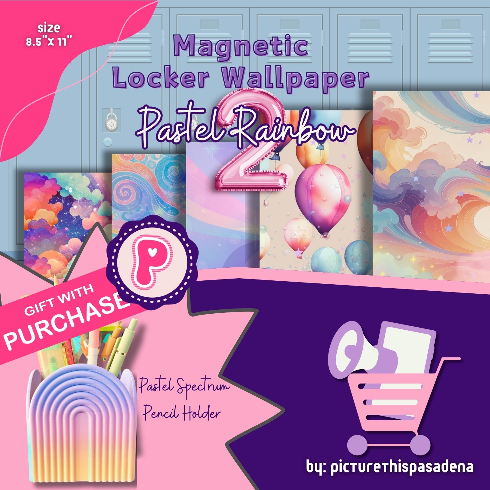 Magnetic Locker Wallpaper - Pastel Rainbow 2 - Includes Matching Pencil Cup