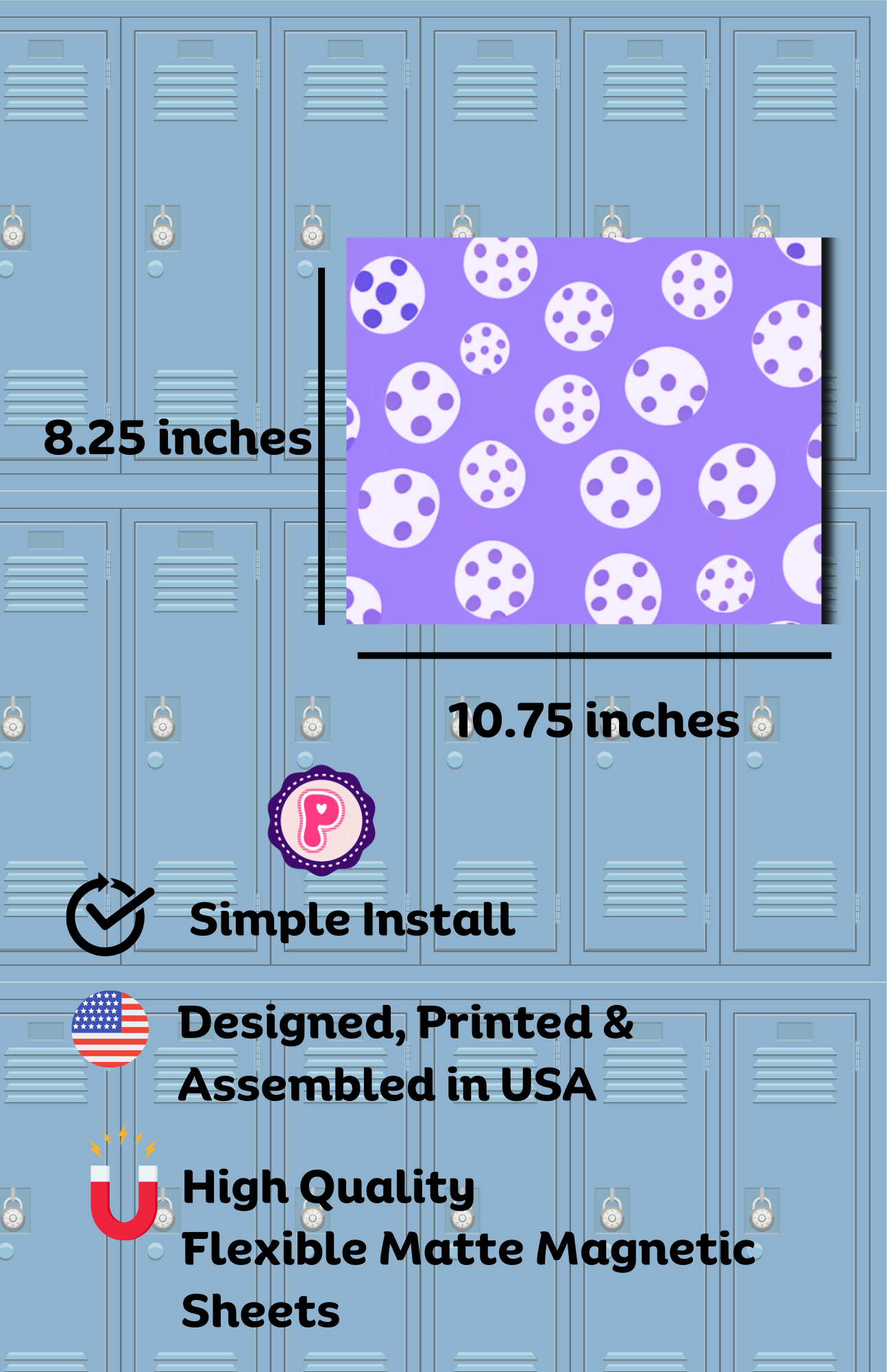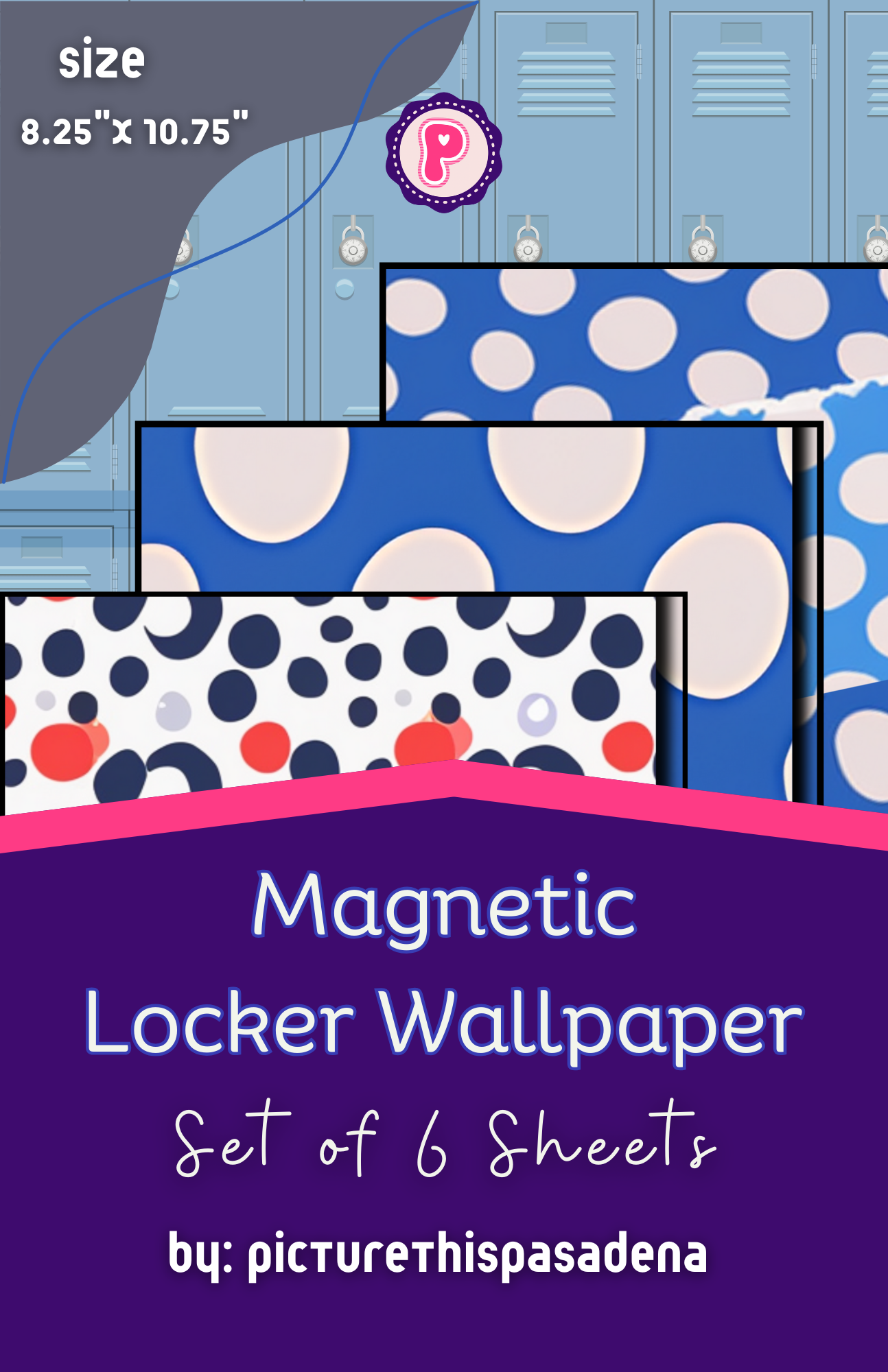 Transform your locker into a fun and organized space with our Magnetic Locker Wallpaper! Each set includes 6 sheets of polka dot patterned wallpaper, available in blue or purple. Made in the USA with free shipping. Perfect for adding a touch of personality to any locker.