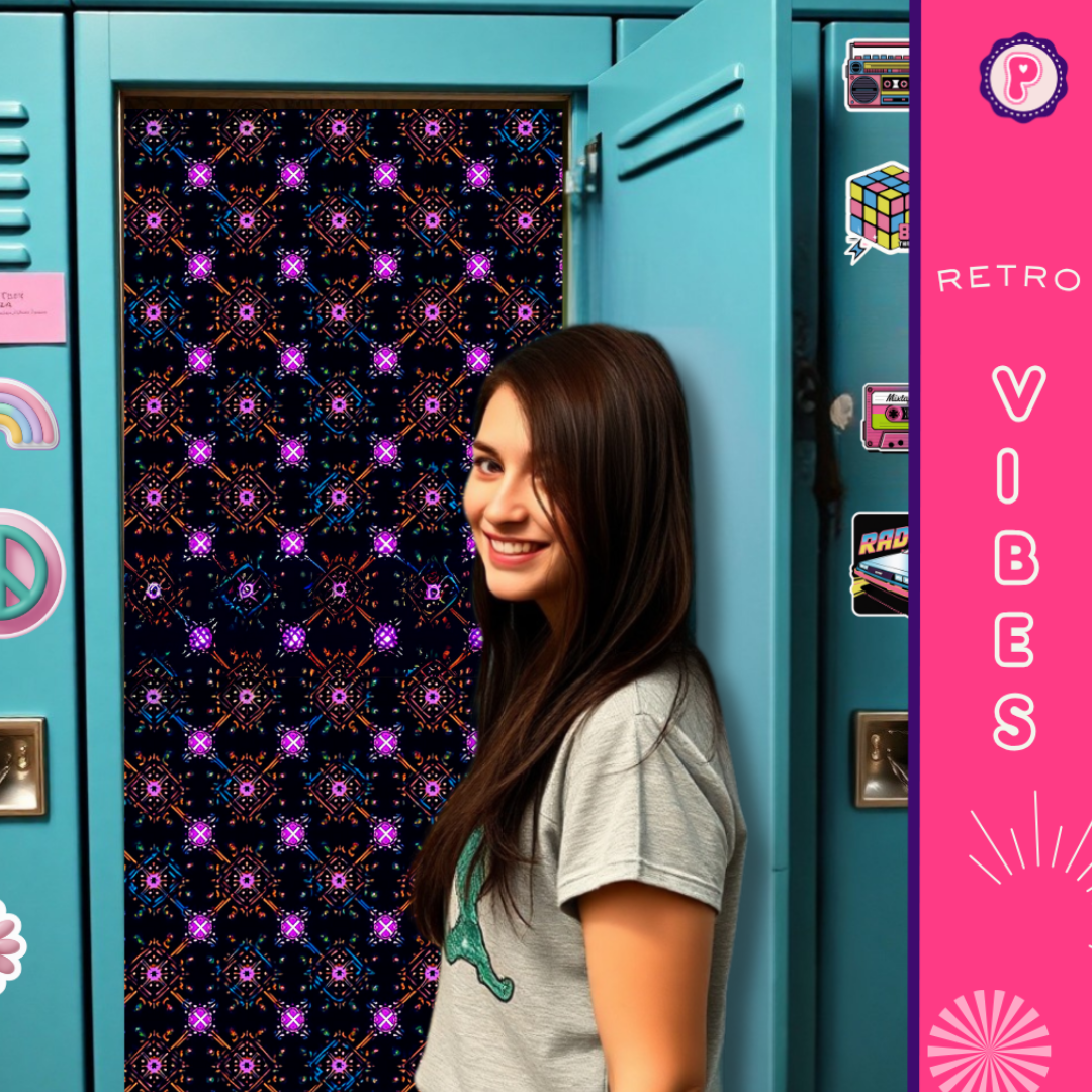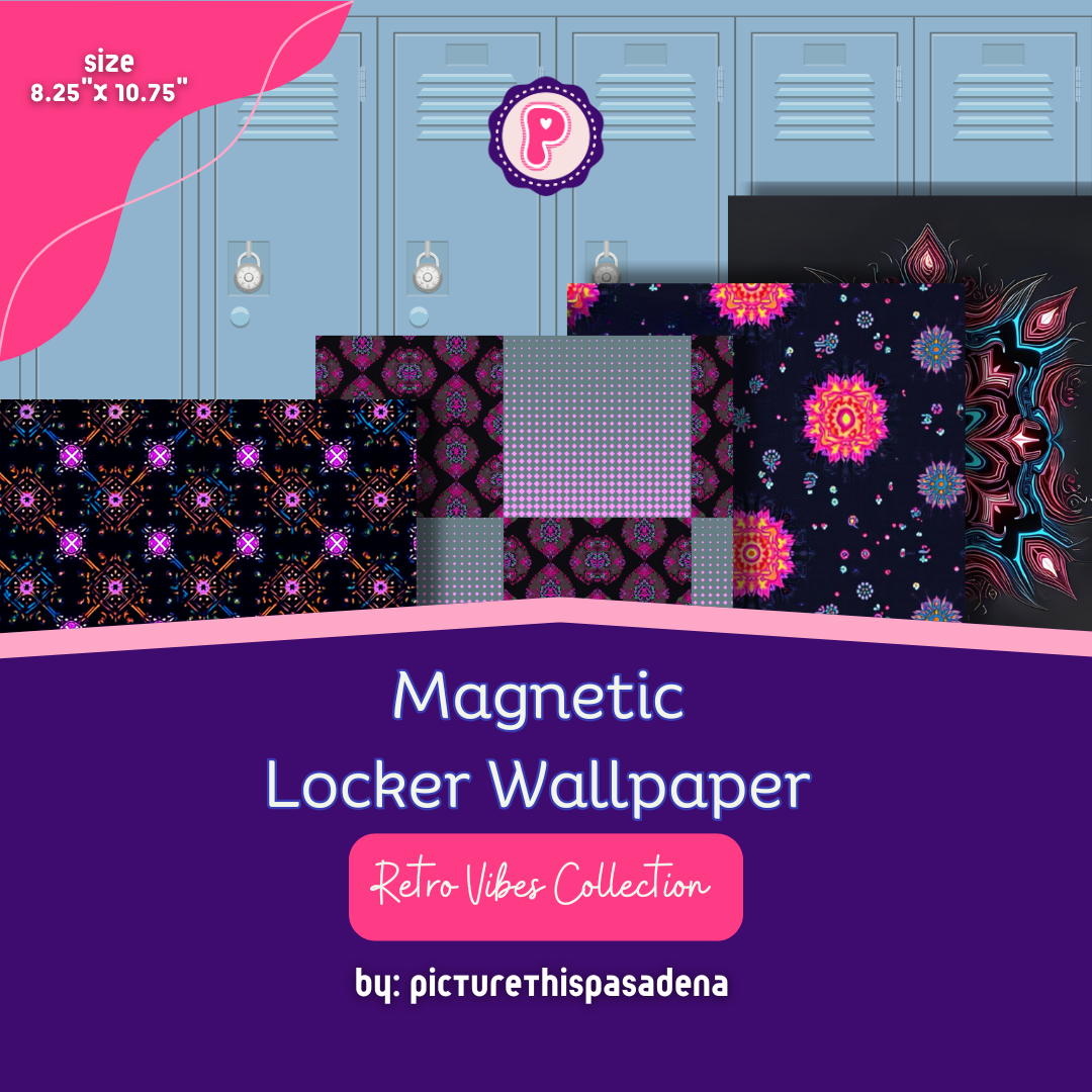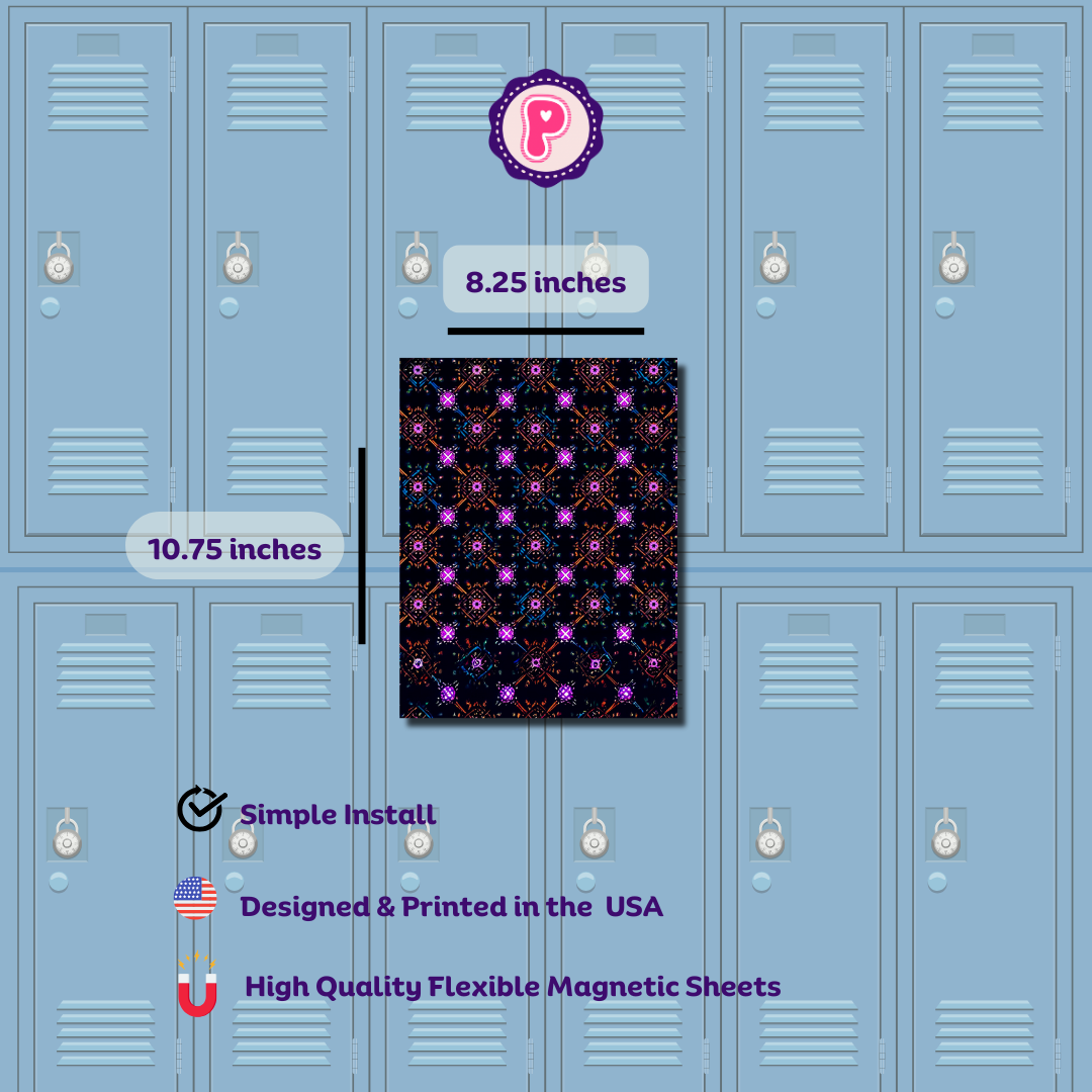 Introduce some retro vibes into your locker with our magnetic locker wallpaper! These bright and bold elements on a dark background will bring a pop of color and style to any locker. Each pack includes 2 sheets, making it easy to customize and decorate your locker.