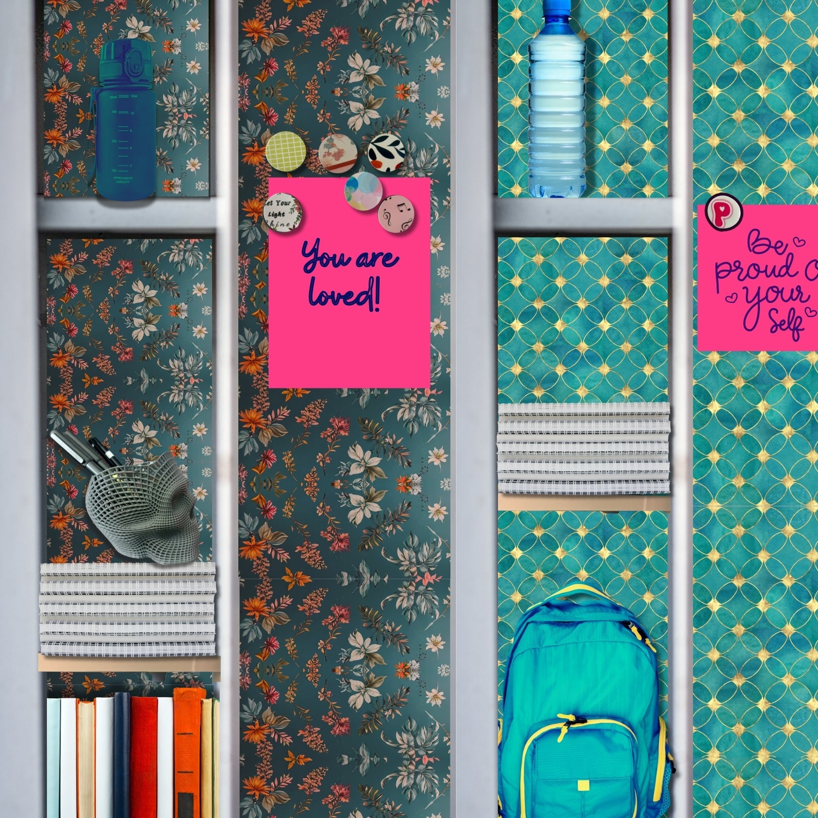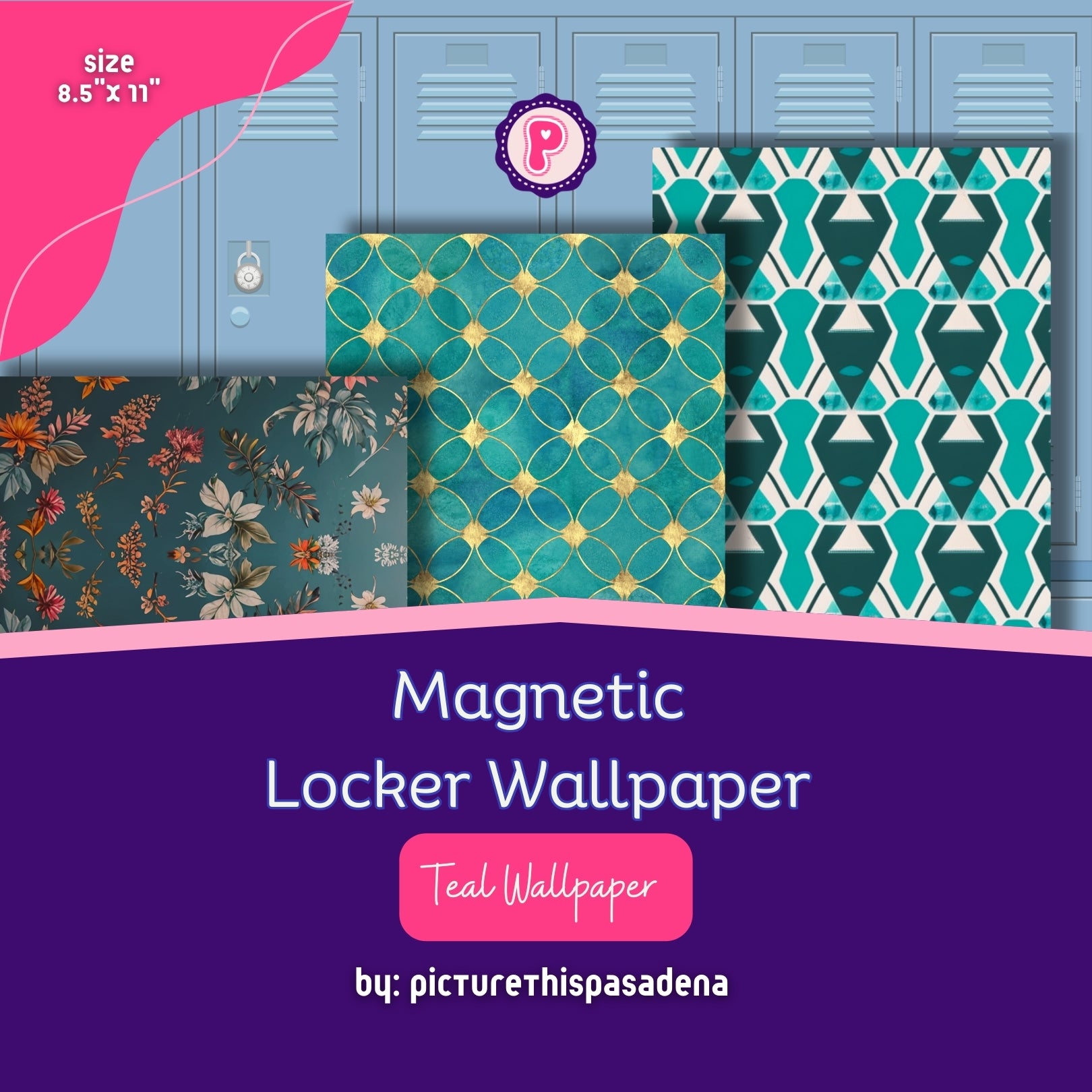 Upgrade your locker with the Magnetic Locker Wallpaper from the Teal Wallpaper Collection. Each pack includes 3 sheets of 8.5 x 11 inch wallpaper with various teal patterns. Give your locker a stylish new look and easily swap out designs with the magnetic feature.