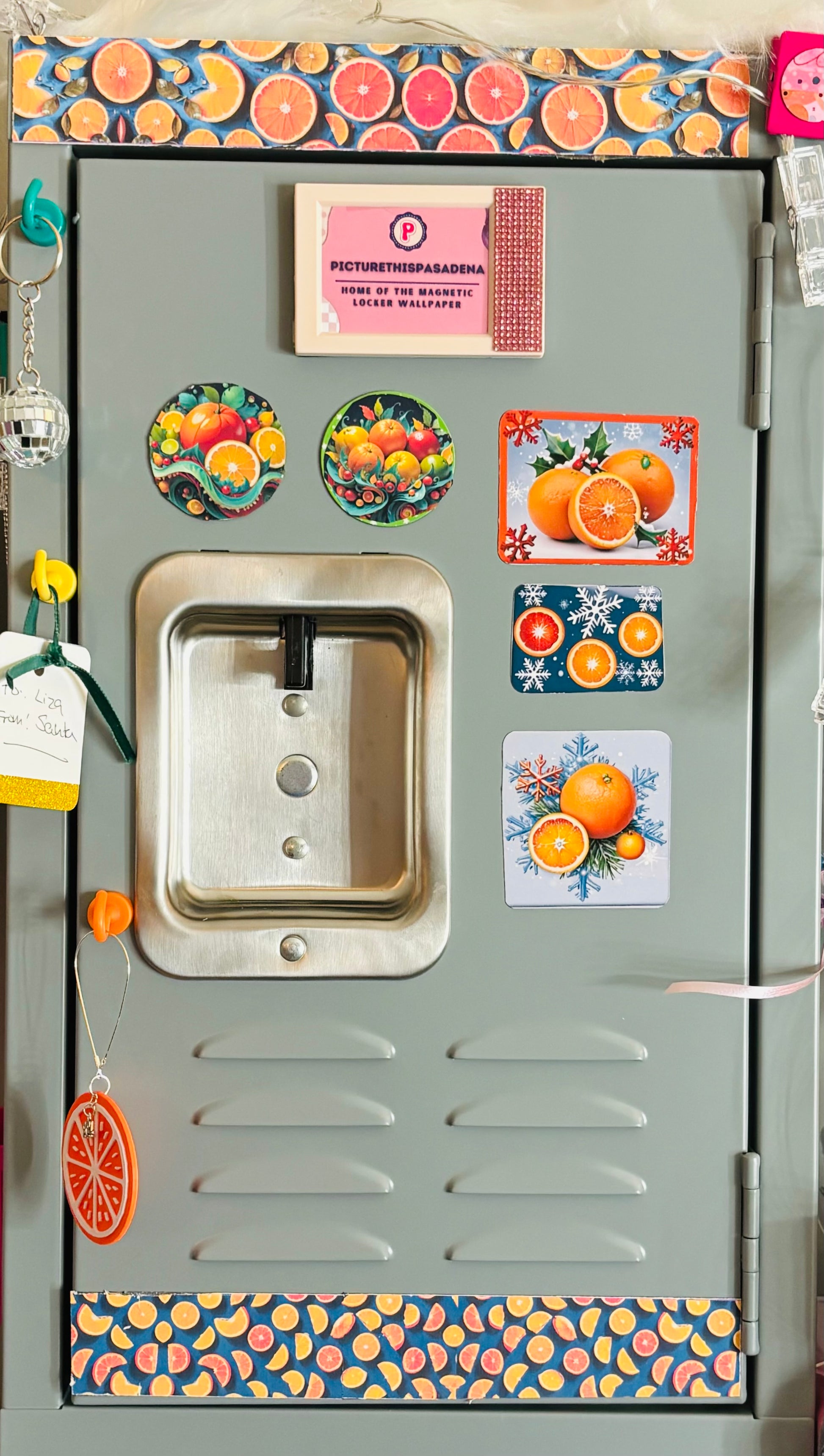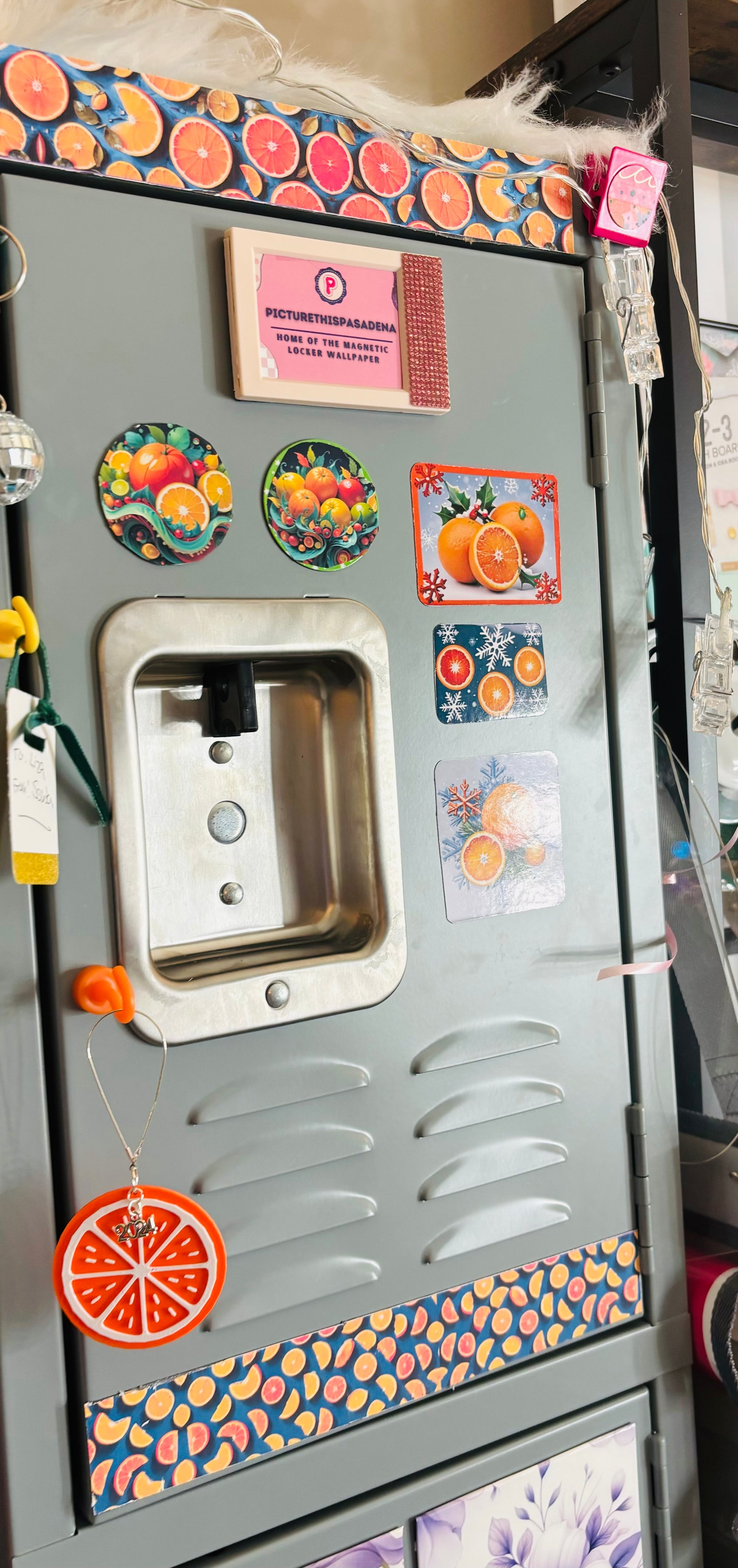 Enhance your home decor with our Magnetic Wallpaper Border Strips in a refreshing citrus pattern. This set of 4 strips easily connects into a continuous design, measuring 6 inches in length and 2 inches in height. Conveniently packaged in a transparent envelope for storage, each strip features a flexible citrus magnet for added charm.