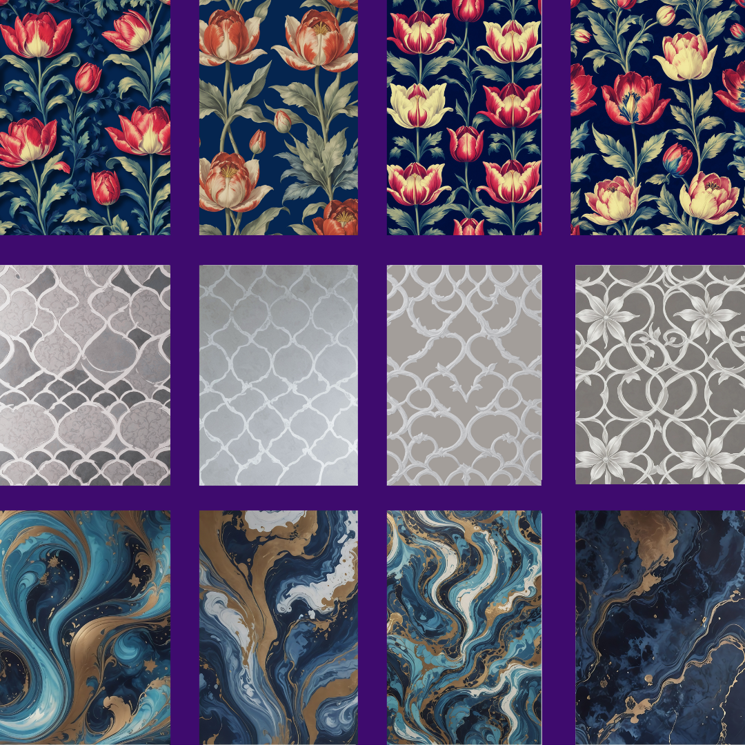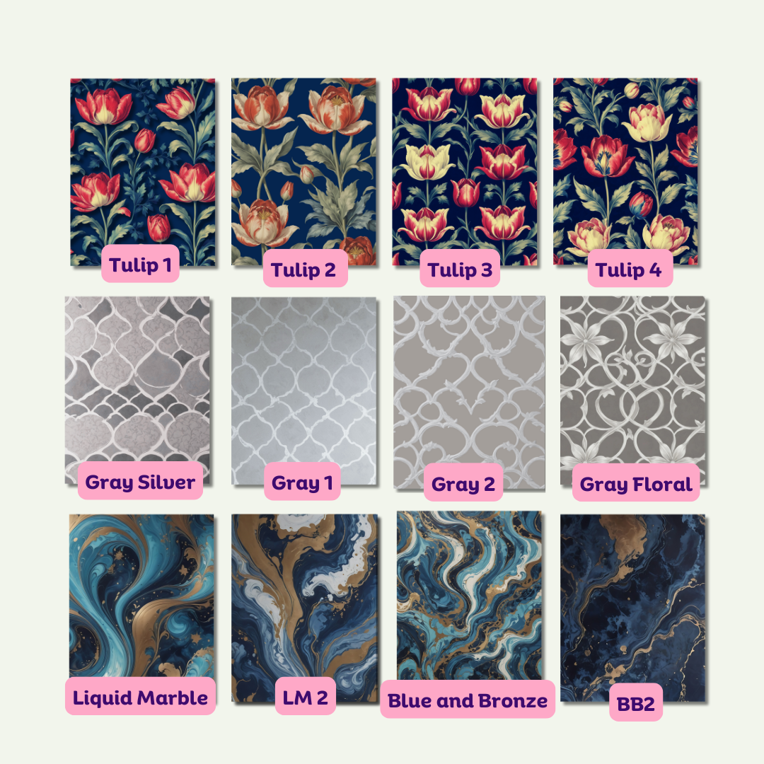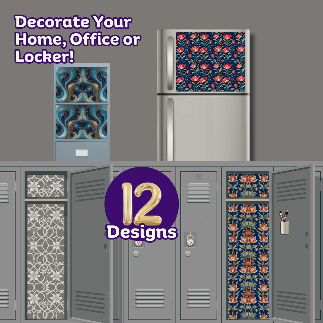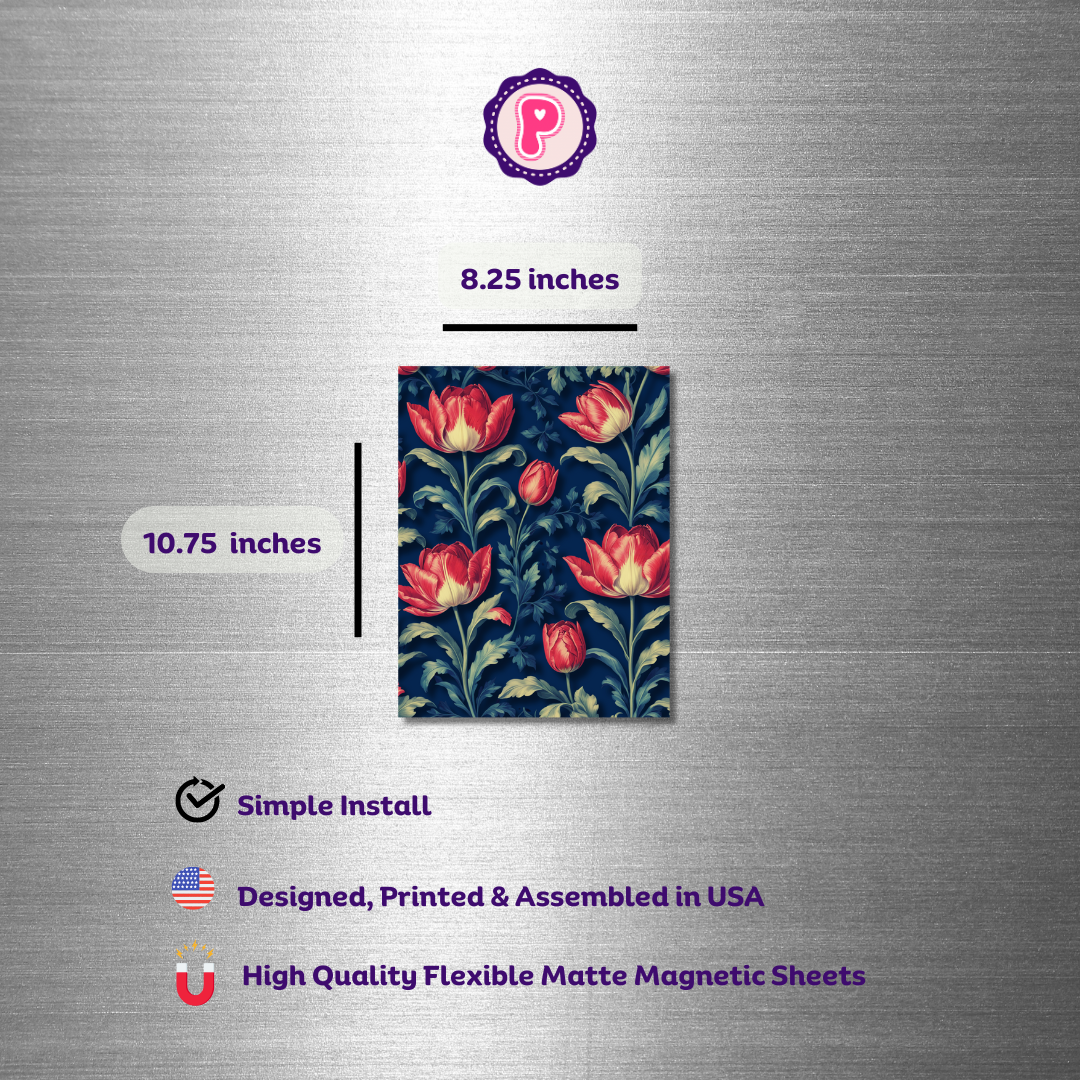 Transform your home with ease using our Magnetic Wallpaper for fridges, file cabinets, or appliances. Choose from a variety of stylish designs, including Navy Tulip, Soft Gray and Silver Trellis, or Blue and Bronze Liquid Marble. Each package includes 6 sheets for hassle-free redecorating. Each sheet measures 8.25 x 10.75 inches. Designed and manufactured in the USA.