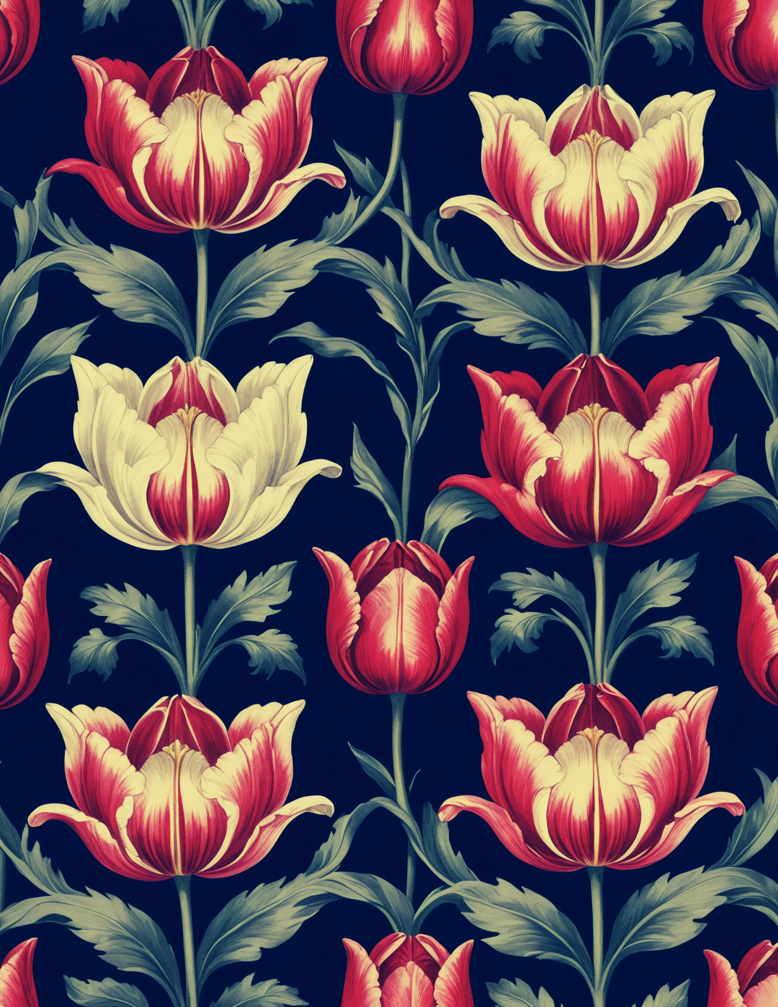 Introduce a touch of elegance and natural allure into your space with our Magnetic Wallpaper Tulips on Navy Background. Inspired by 19th-century textile designs, this enchanting mirror-image pattern boasts blooming florals in lighter red and sage tones against an inky navy background. Dramatic, yet refined. Set of 4 Sheets. Each sheet measures 8.25 x 10.75 inches.