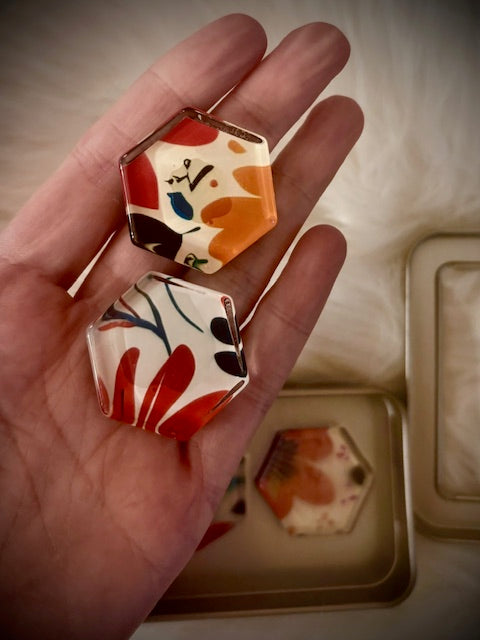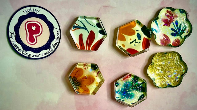 Choose from a variety of patterns and finishes to suit your style. These magnets are perfect for brightening up your fridge, office, locker or any magnetic surface.