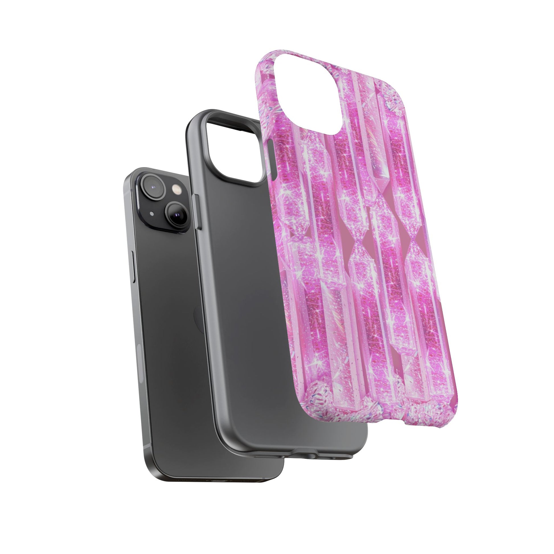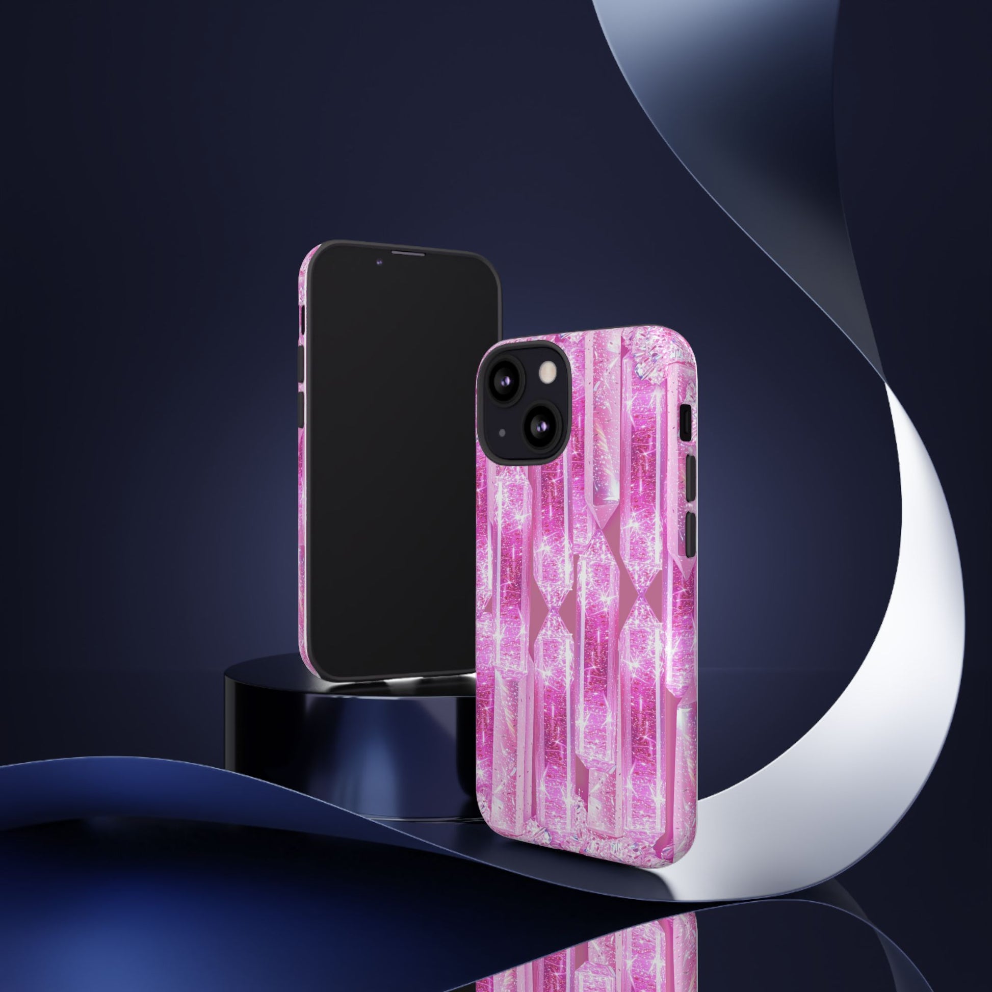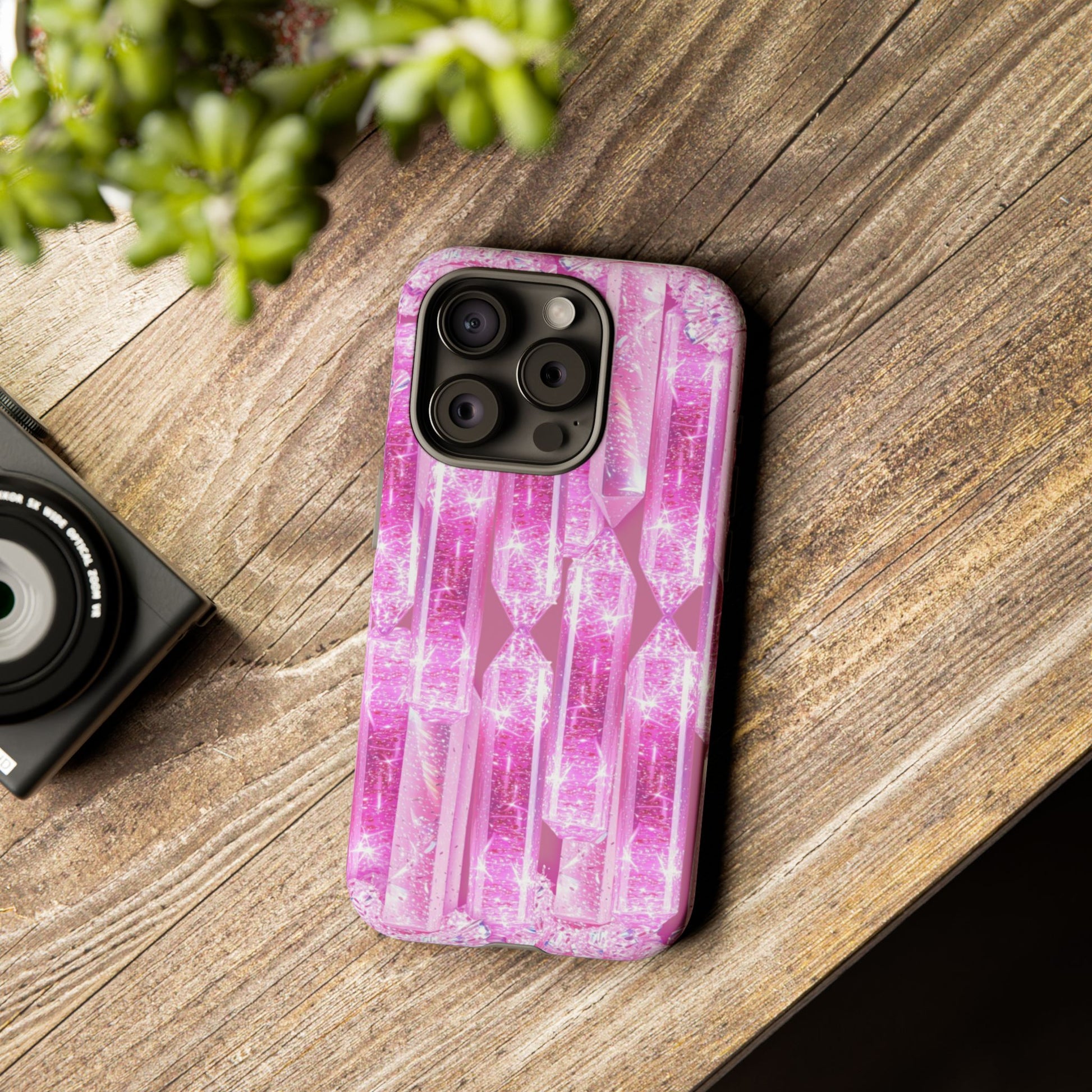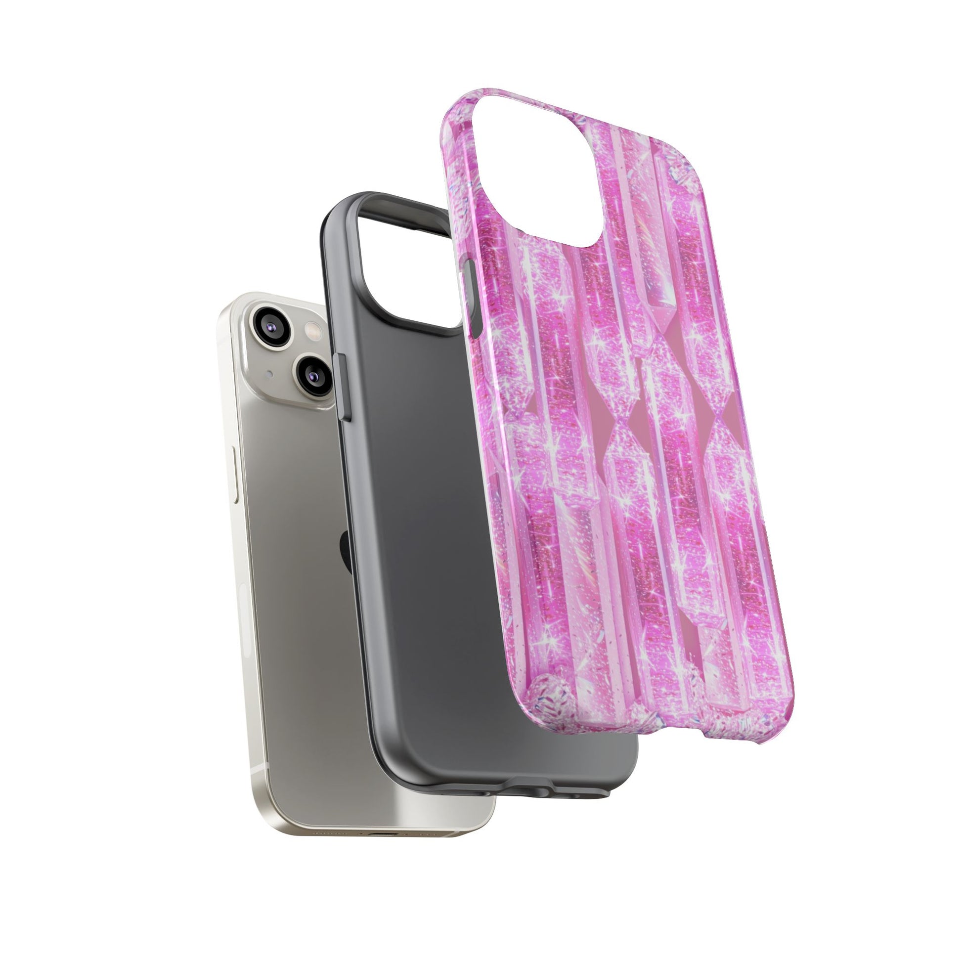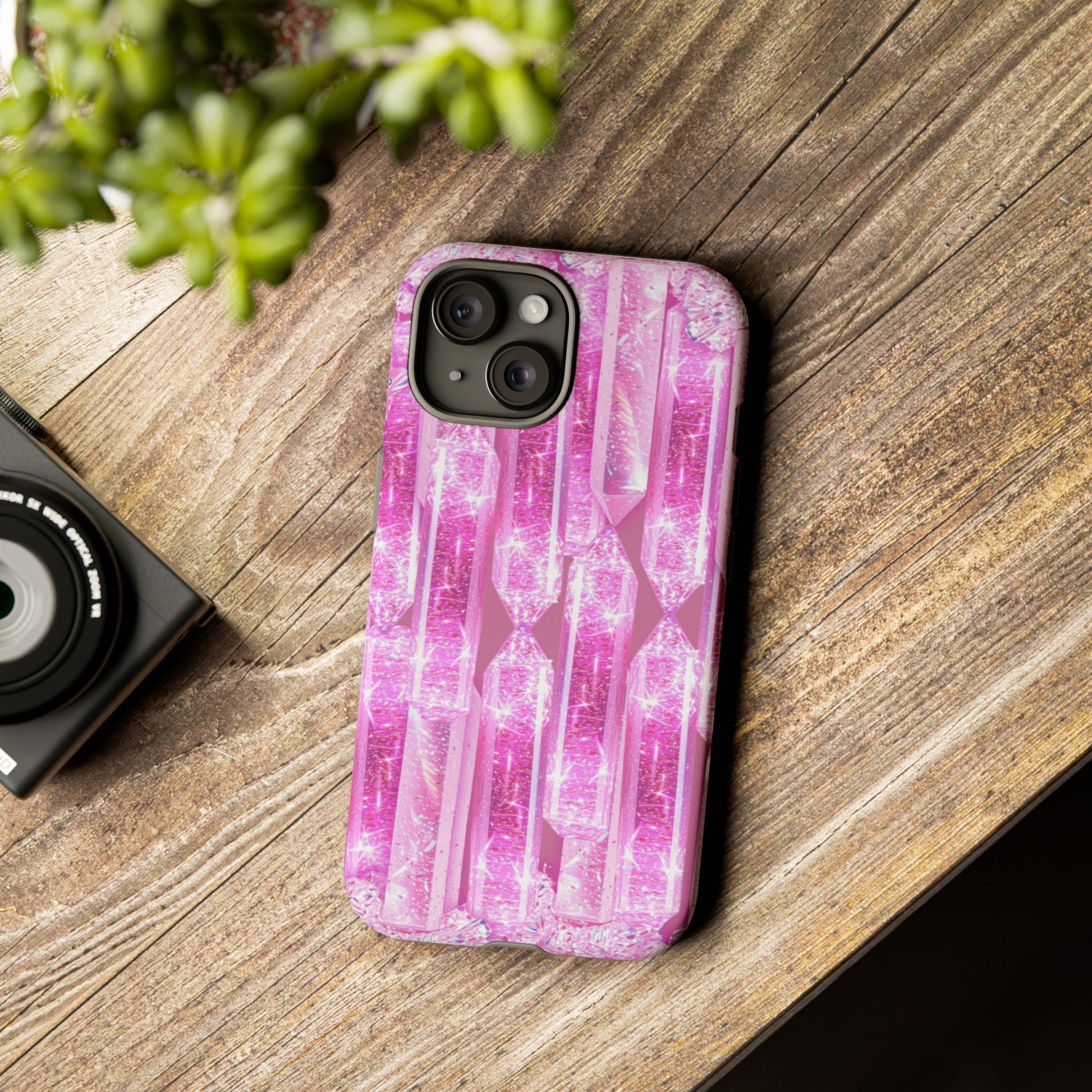 Pink Crystal Pattern Tough Phone Case — Sparkling Gemstone Protective Cover