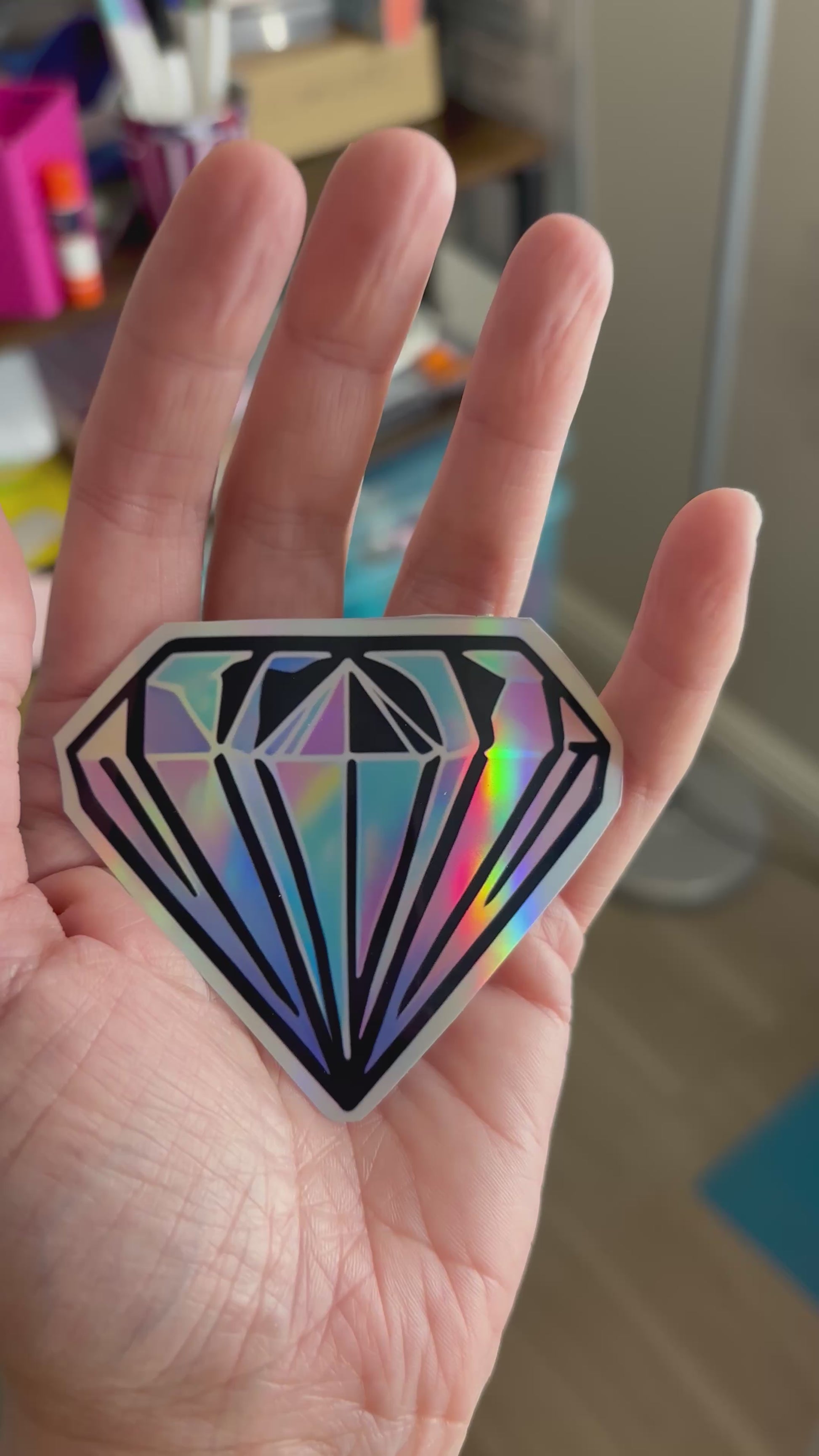 These 20 hand cut diamond shaped vinyl stickers feature a stunning rainbow holographic finish. Designed with care in California, these stickers are sure to add a touch of sparkle to any surface. Expertly printed and shipped for your convenience.