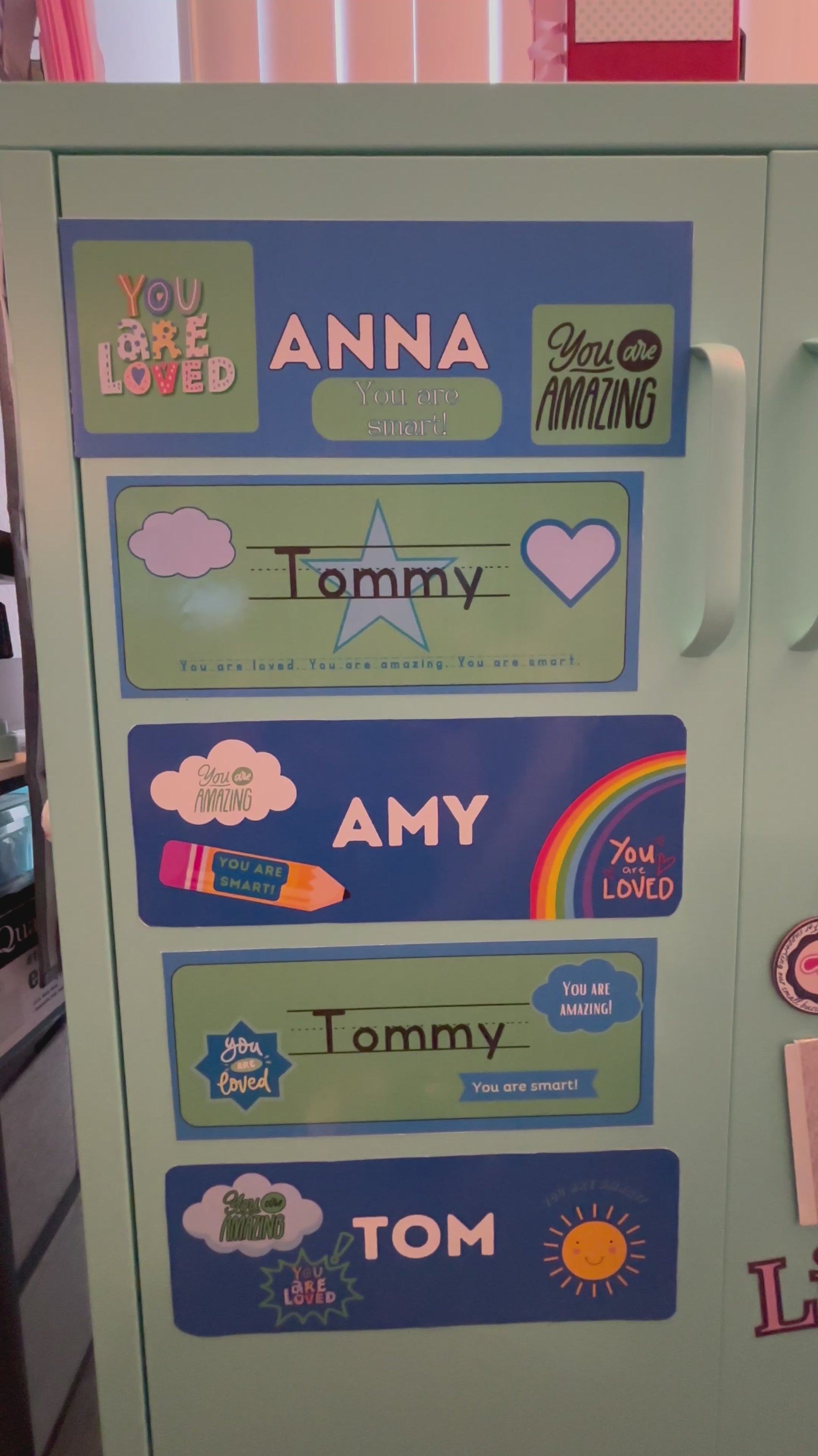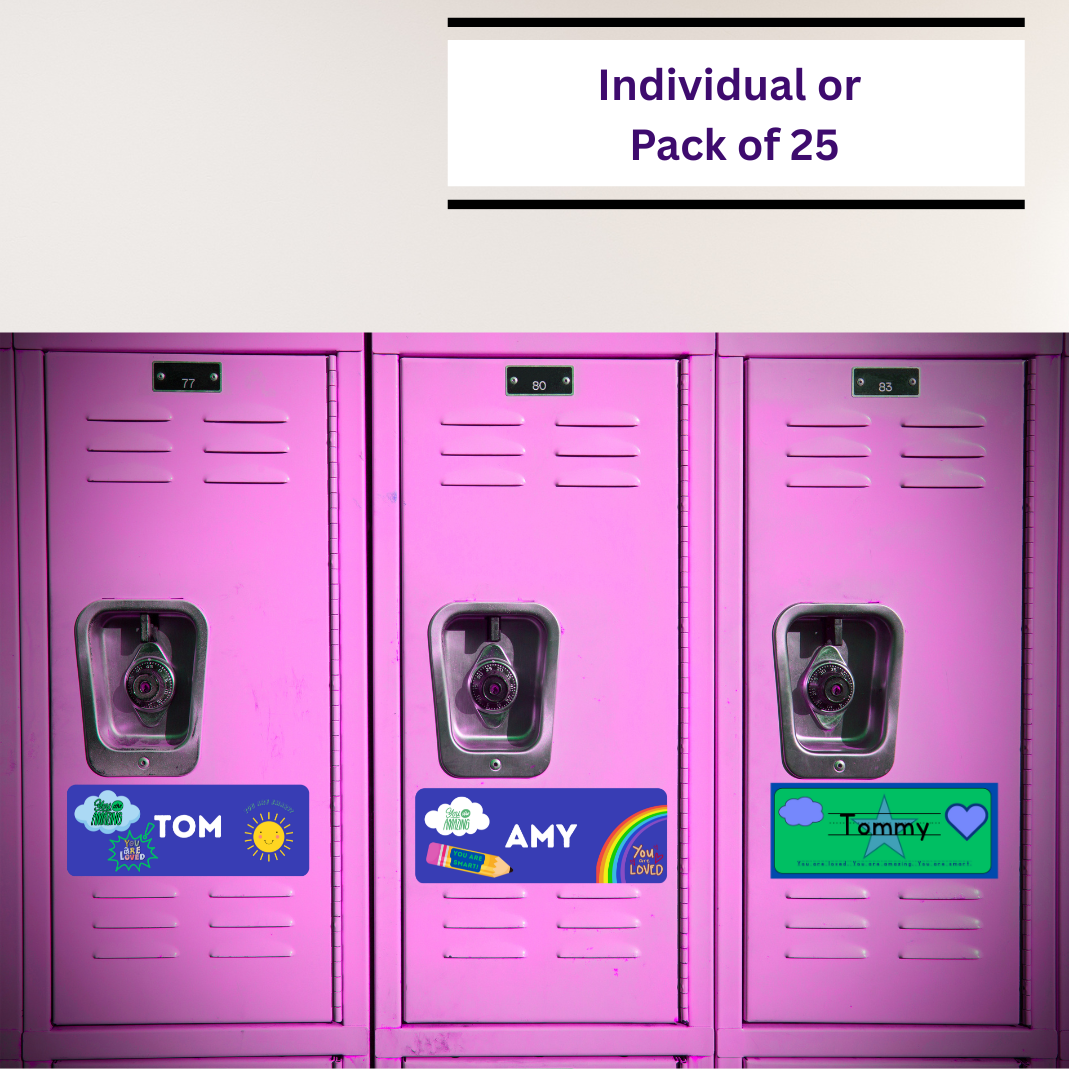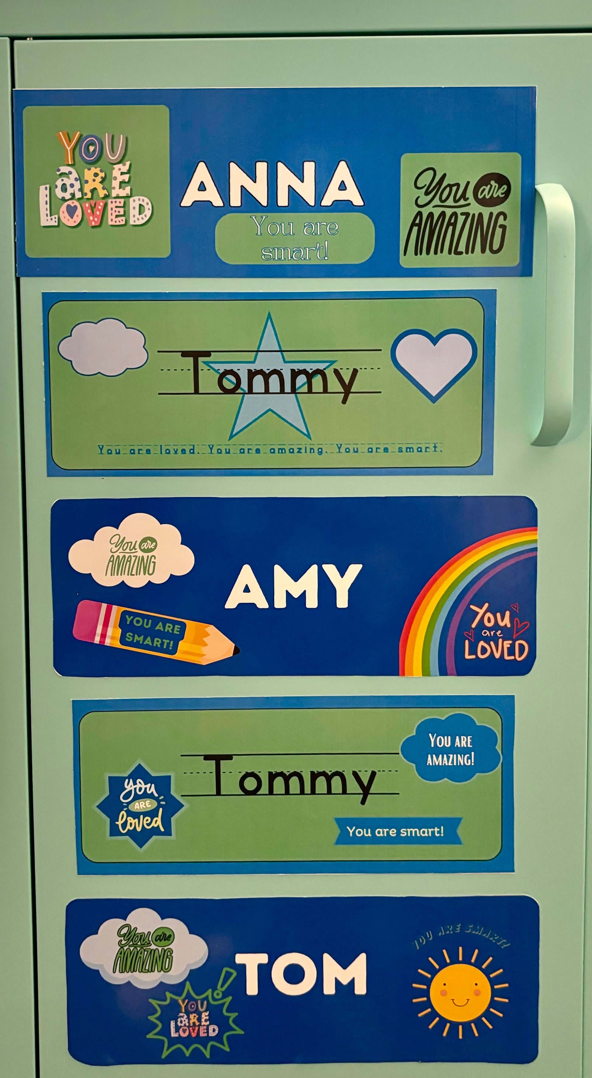 Select from 5 different styles or opt for a variety pack if buying in bulk. Works over our magnetic locker wallpaper! Available individually or at a discounted rate in a package of 25 magnetic name tags.