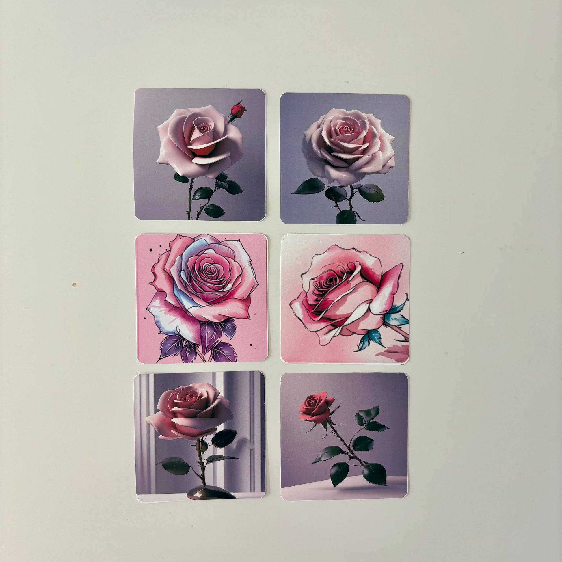 Add a touch of nature to any surface with our handcrafted Rose Stickers. These vinyl stickers feature 11 unique designs and come in various sizes, perfect for adding a pop of color to your laptop, phone case, or notebook. Bring the beauty of roses with you wherever you go.